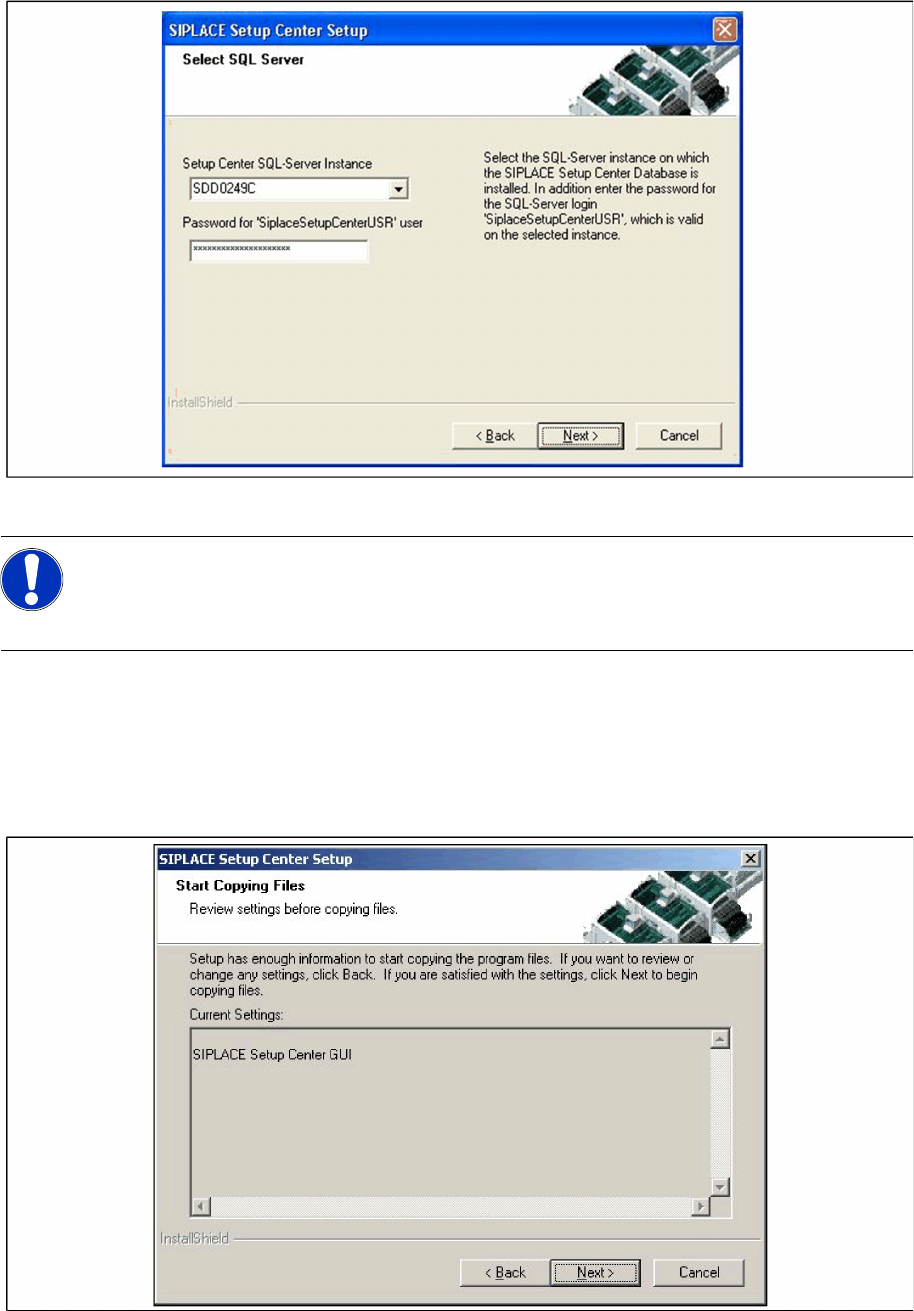This setup type contains the database components of the SIPLACE Setup Center. Setup detects if SQL