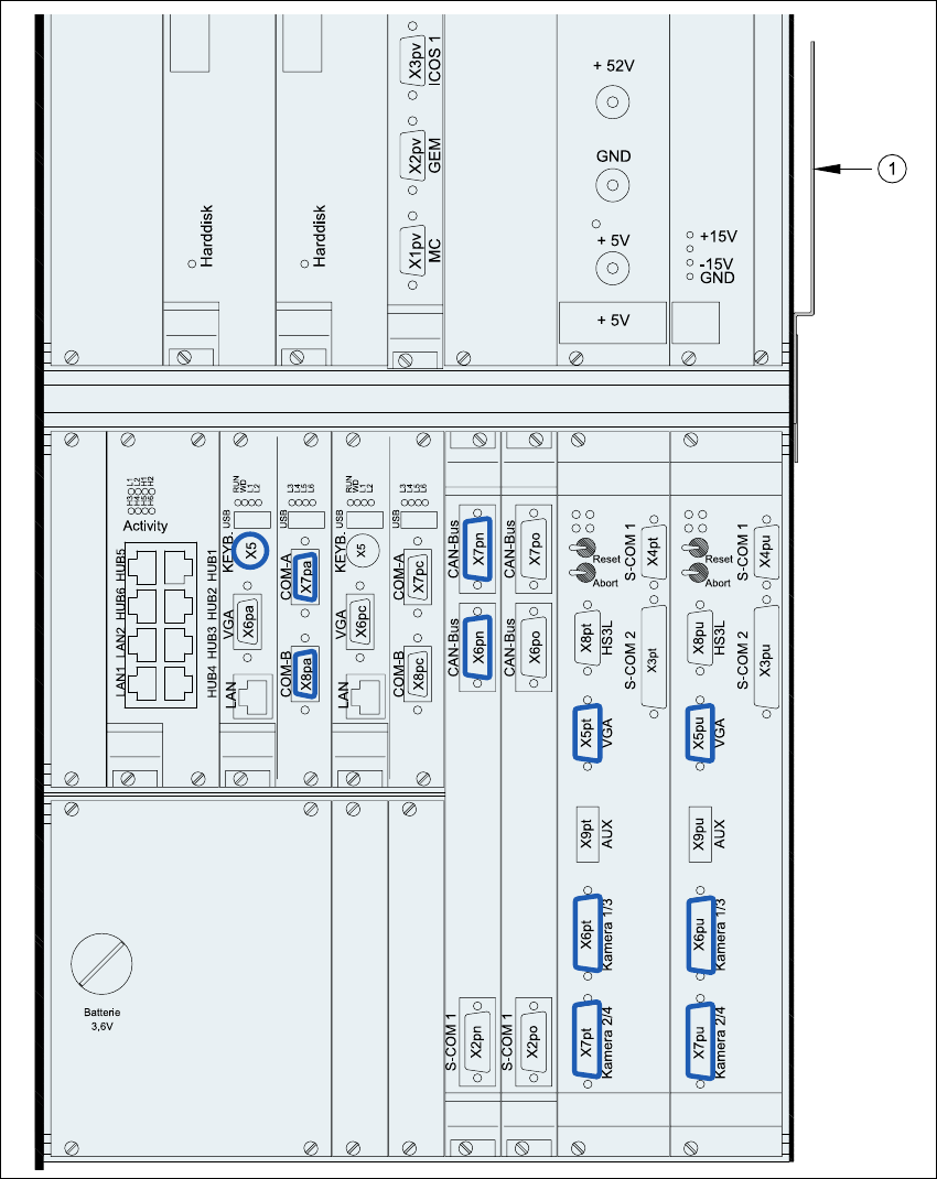 Fig. 4.5 - 9 Unità del computer, lato anteriore - collegamento della spina