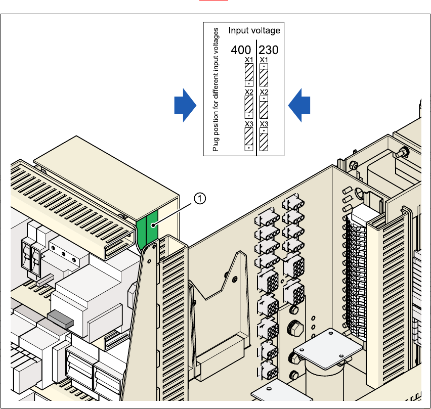Fig. 4.4 - 5 Posizione di scheda e spina per la limitazione della corrente d'inserzione