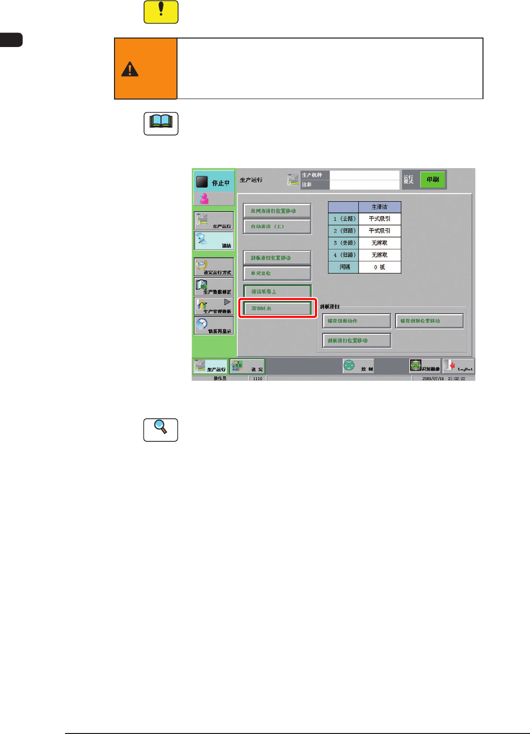 关于 [ 溶剤吐出 ] 按钮,请参照