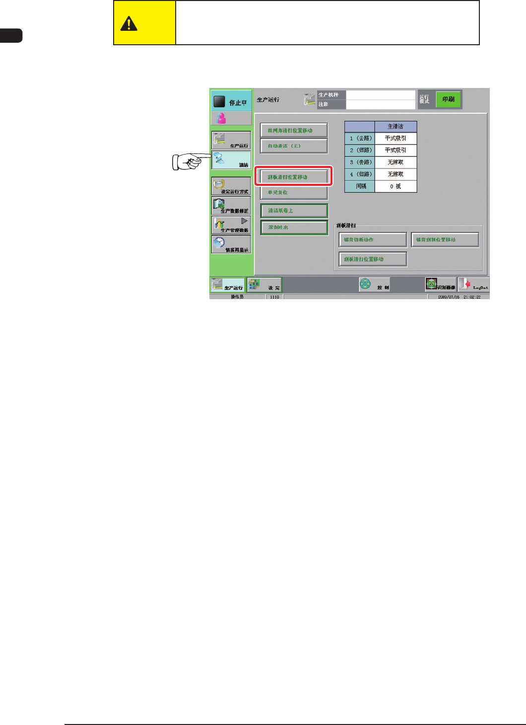 界面的 [ 溶剤吐出 ] 按钮,抽出空气,使工业酒精少量