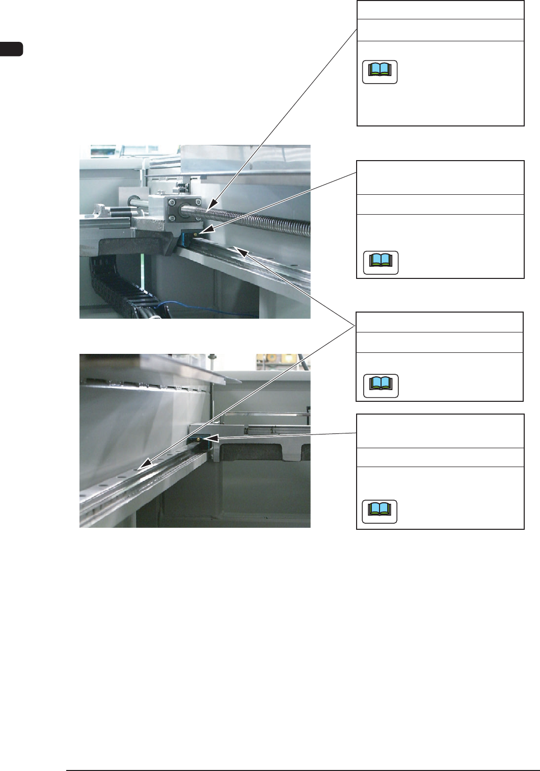 4OM-1513 1-21 第一章3.维护保养部位 3.2.4 线路板识别部 线路板制动器 防止线路板翘曲固定器(柱塞前端部) 滚轴外周面附着垃圾时,请用棉纱 除去。 每周 清扫 请用棉纱清扫。 每周 清扫 请注意不要残留纱头。 照相机(透镜) 线路板识别照明玻璃面 请用照相机用吹气刷除去垃圾或 灰尘。 每月 清扫 线路板识别X轴直线导轨 每月 清扫 线路板识别X轴直线导轨 请用刷子或刮刀涂刷润滑油。 每六个月 注油 请用油棉纱…