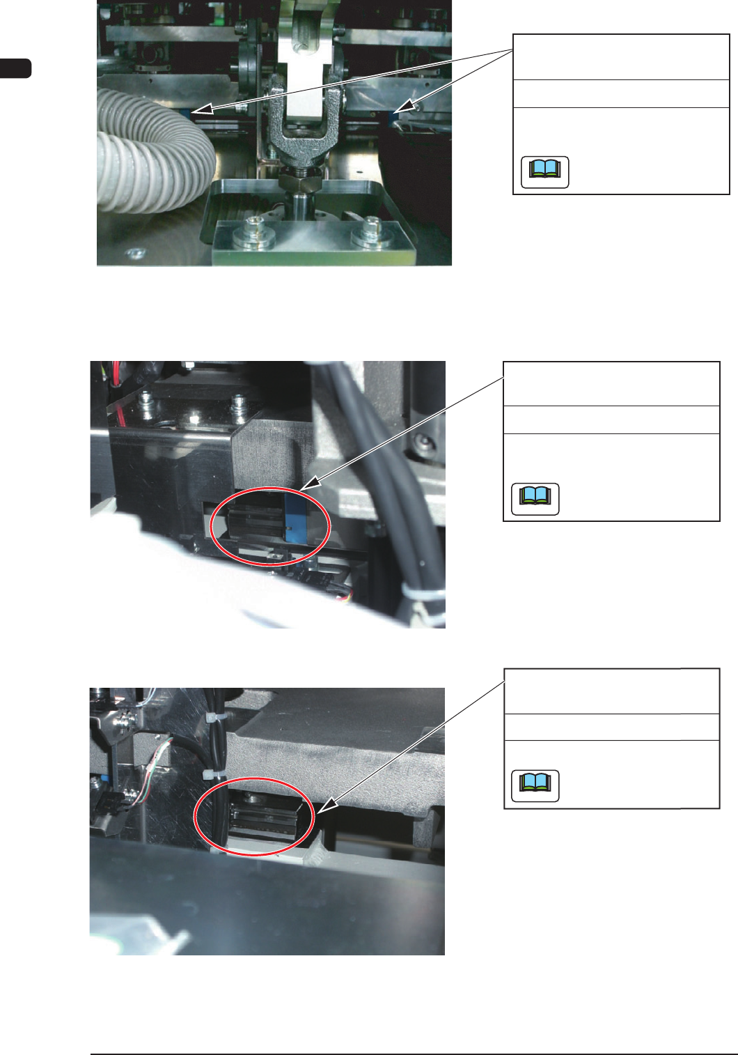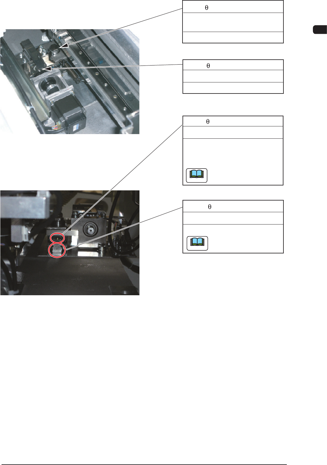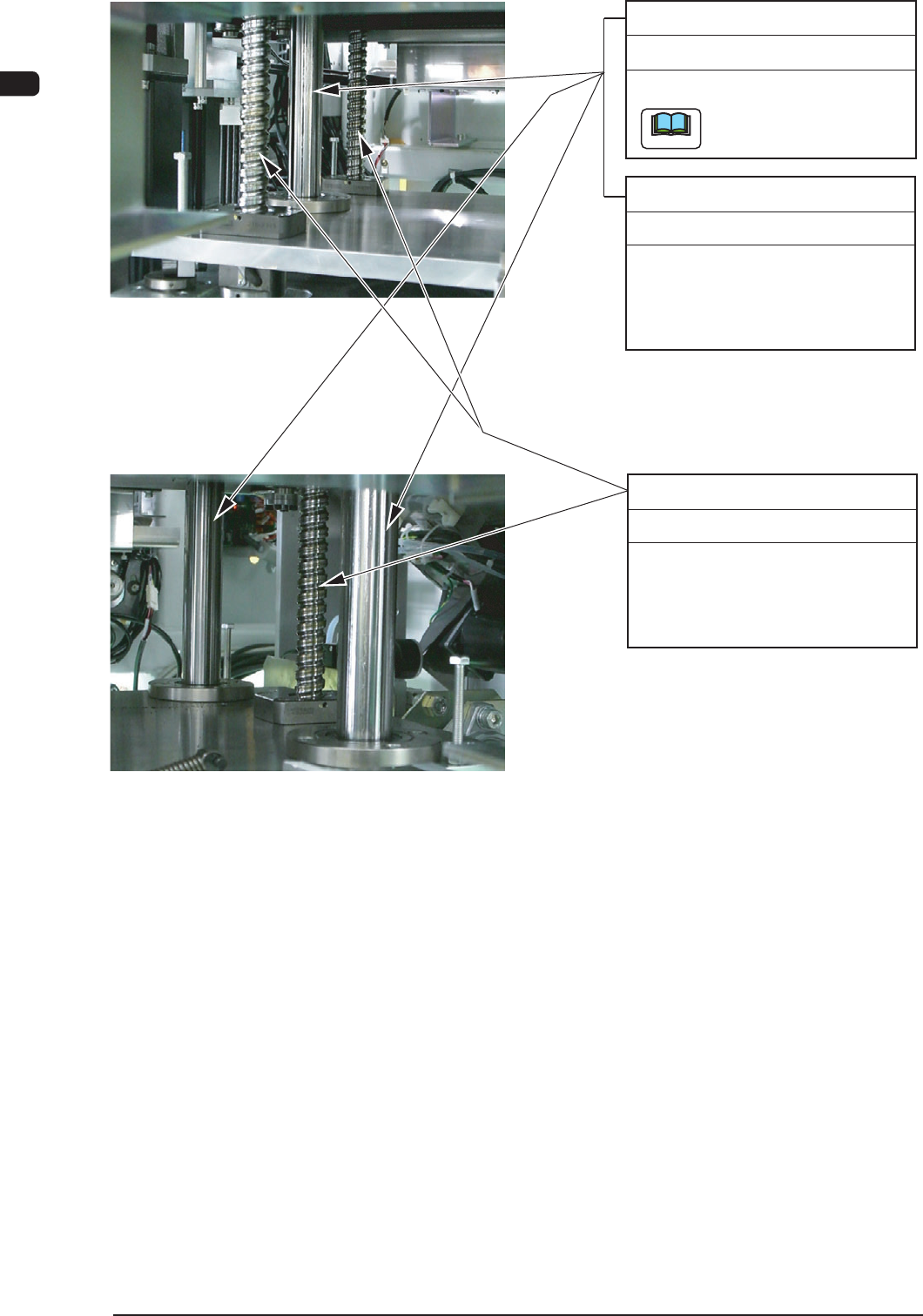 4OM-1513 1-31 第一章3.维护保养部位 请用刷子或刮刀涂刷润滑油。 初次在一个月后,以后每三个月 注油(NM1) 工作台 轴移动轴承外周 请用刷子或刮刀涂刷润滑油。 每六个月 注油 工作台 轴滚珠丝杠 请用油棉纱清扫。 每月 清扫 请注意不要残留纱头。 工作台 轴直线导轨 用注油枪从注油嘴注入新的润 滑油。 从装置背面注油。 每五年 注油 使用助推杆为H形。 工作台 轴直线导轨 F4A25 0908-001 Note …