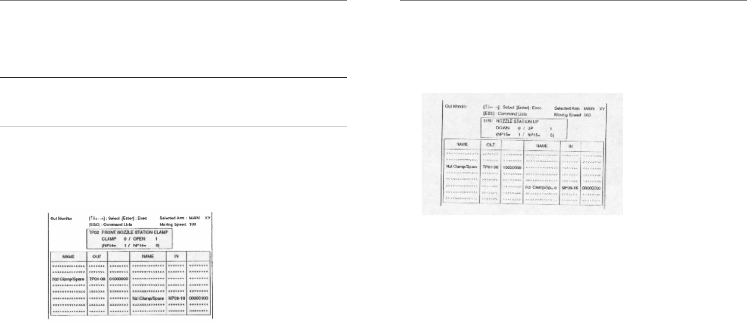输出监示屏幕在换嘴站下降时显示“0”,上升时显示“1”。