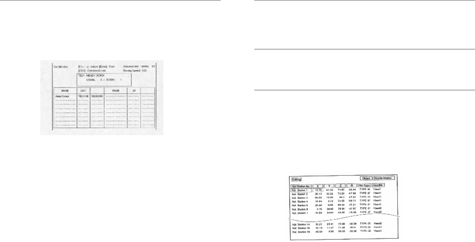 输出监示屏幕在换嘴站下降时显示“0”,上升时显示“1”。