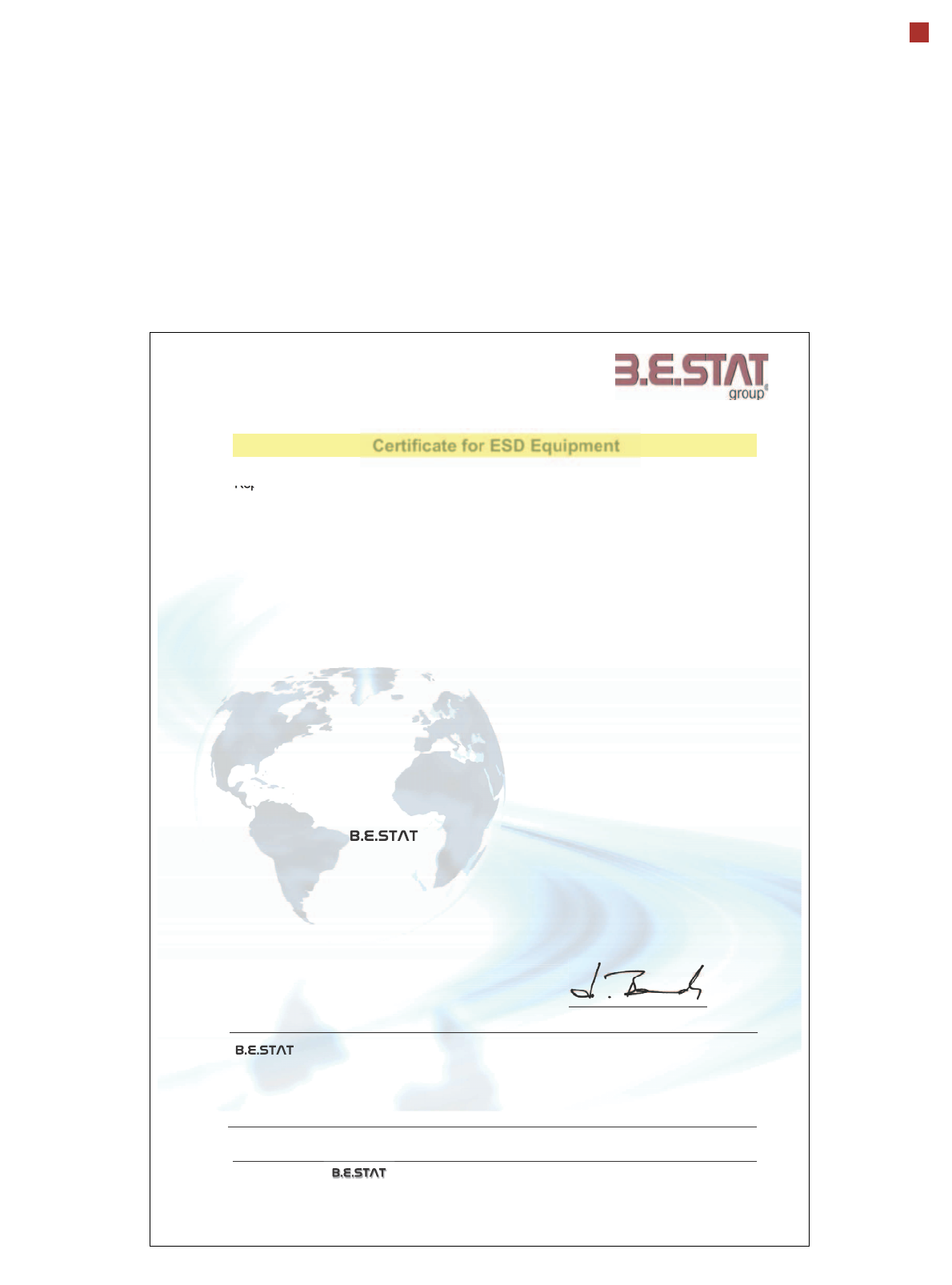 Certificate for ESD Equipment