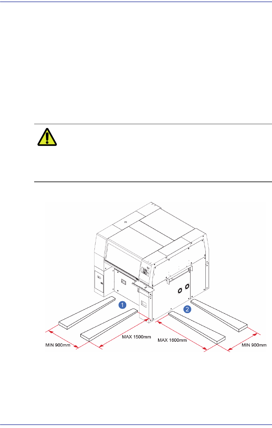 注 意 如果叉式升降机的升降臂(叉)碰到设备盖子的底部,盖子可能