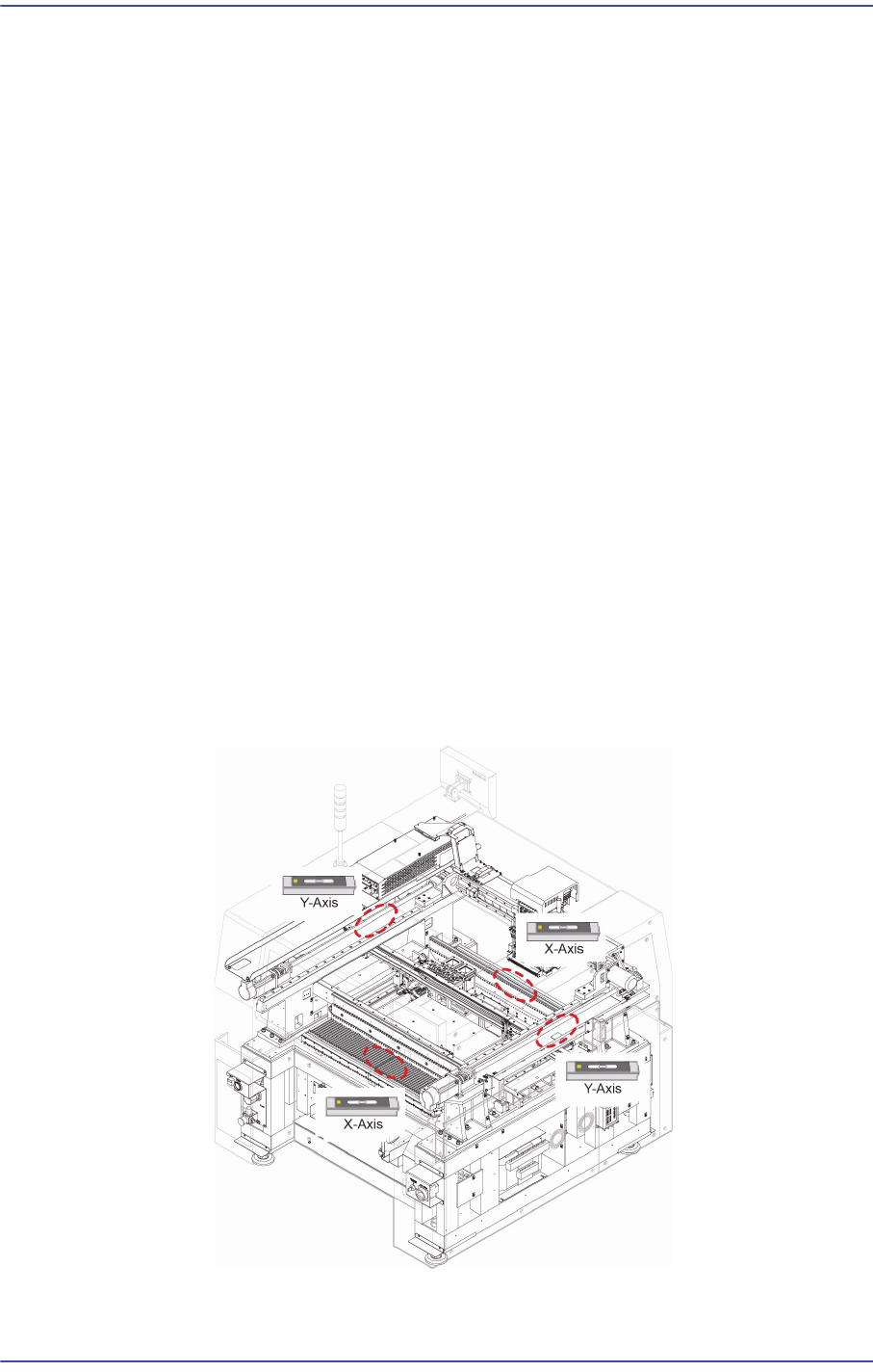 3. Y1, Y2 轴 L/M Guide 顶面和前面喂料器座顶面上放置水平仪,调节水平,公差