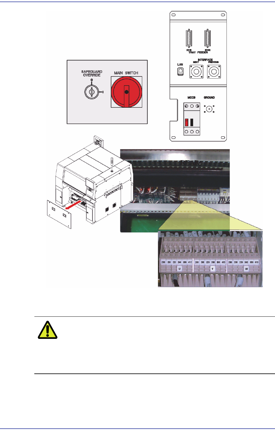 警 告 变更变压器输入电压时,请同时变更设备电源标签上的电压,使