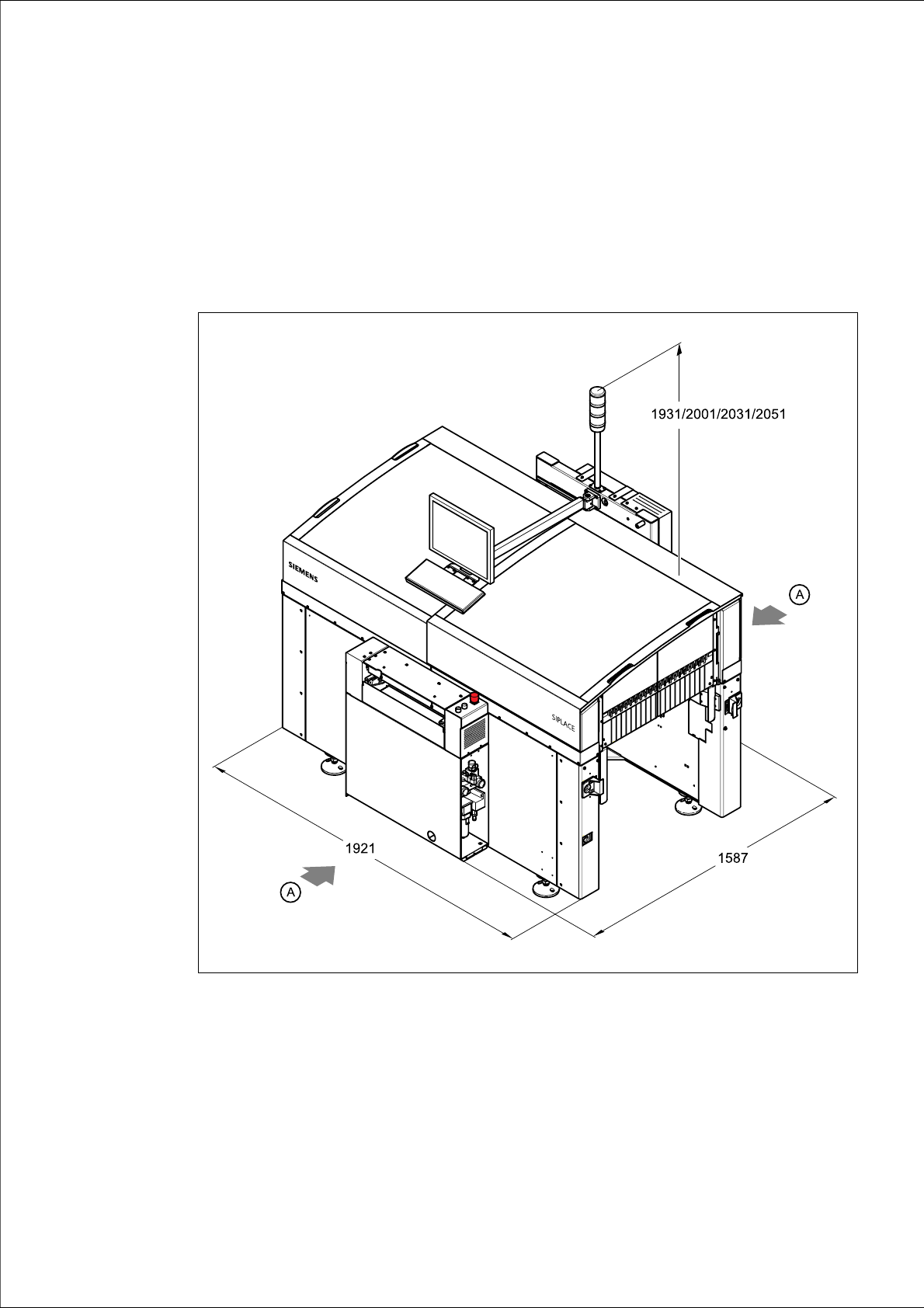 machine is 1931 mm. For a PCB conveyor height of 950 mm (SMEMA option), this gives an