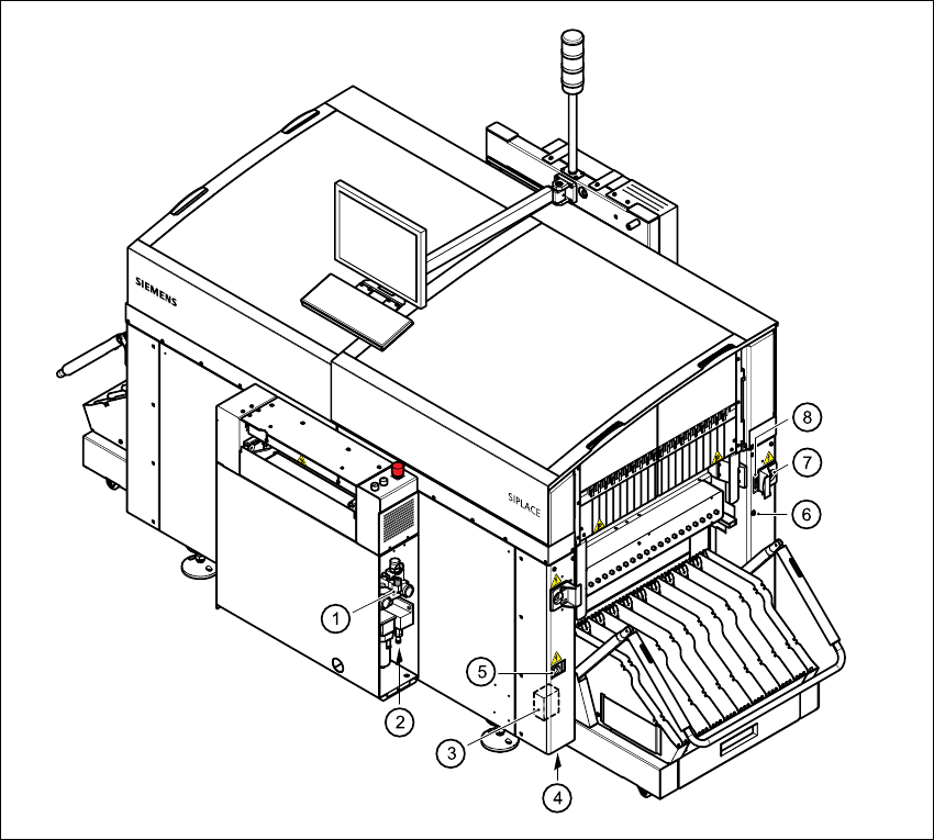 Fig. 3.3 - 1 Electrical and pneumatic connection points on the placement system part 1