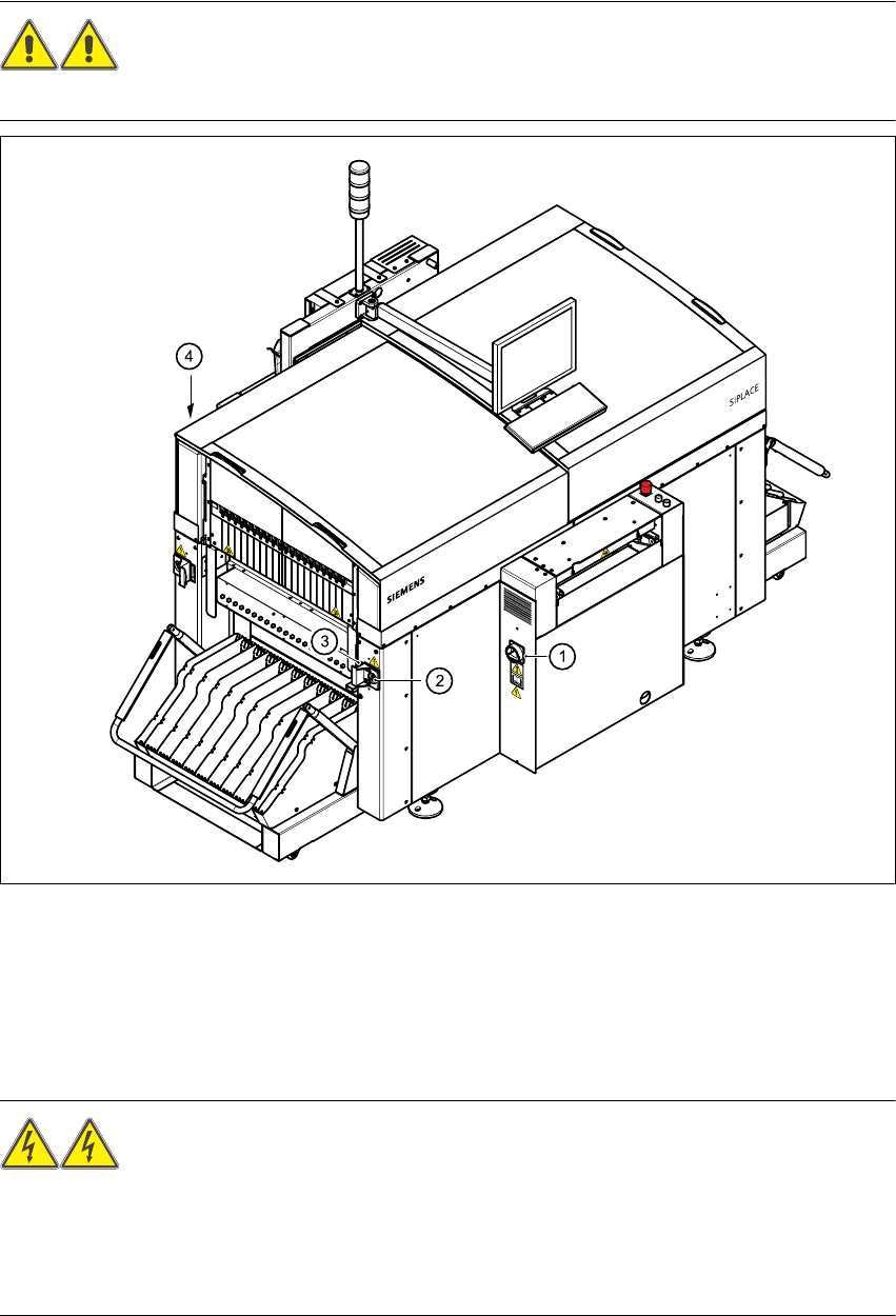 The placement system is supplied with 3 x 400 V~ or 3 x 208 V~ US version) ± 5%, 50/60 Hz