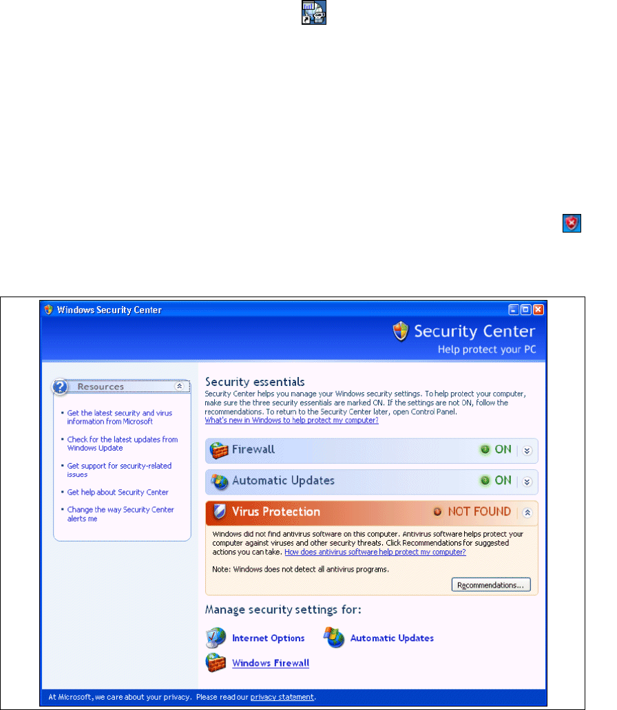 → Start the Windows Security Center by double-clicking on the Windows Security Alerts