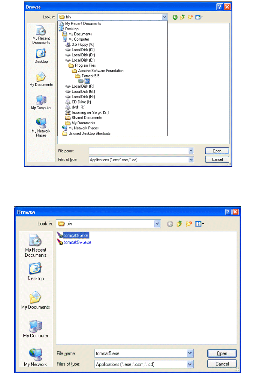 → In the Tomcat installation path, click on the ..\Tomcat 5.5\bin path and then on the Open