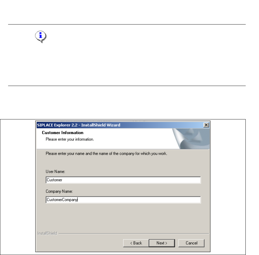3.1 Initial Installation of SIPLACE Explorer 2.2 Edition 05/2007 EN