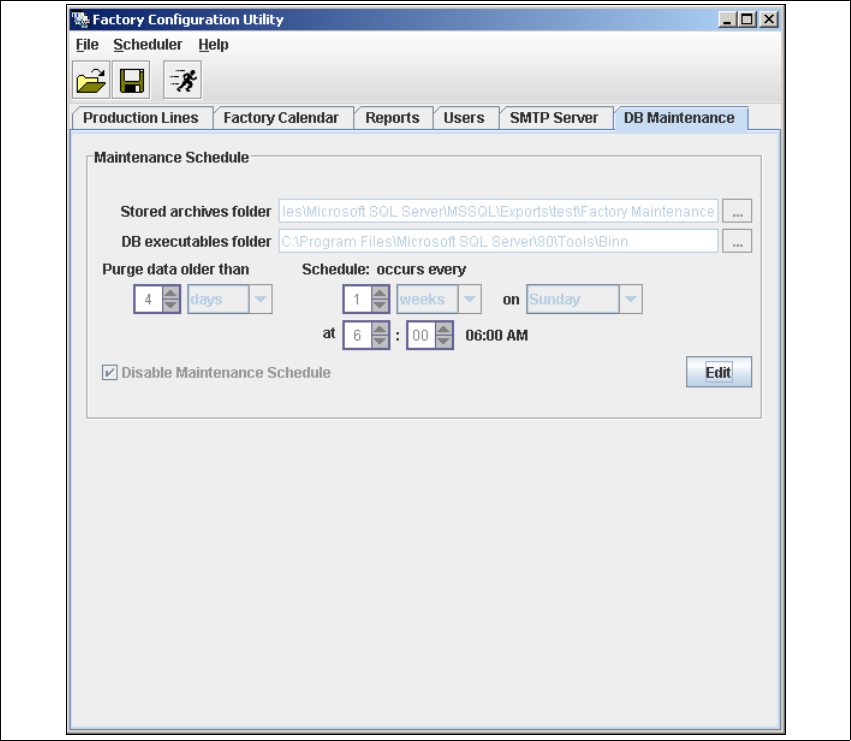 Define the maintenance schedule for the factory database, here. 4
