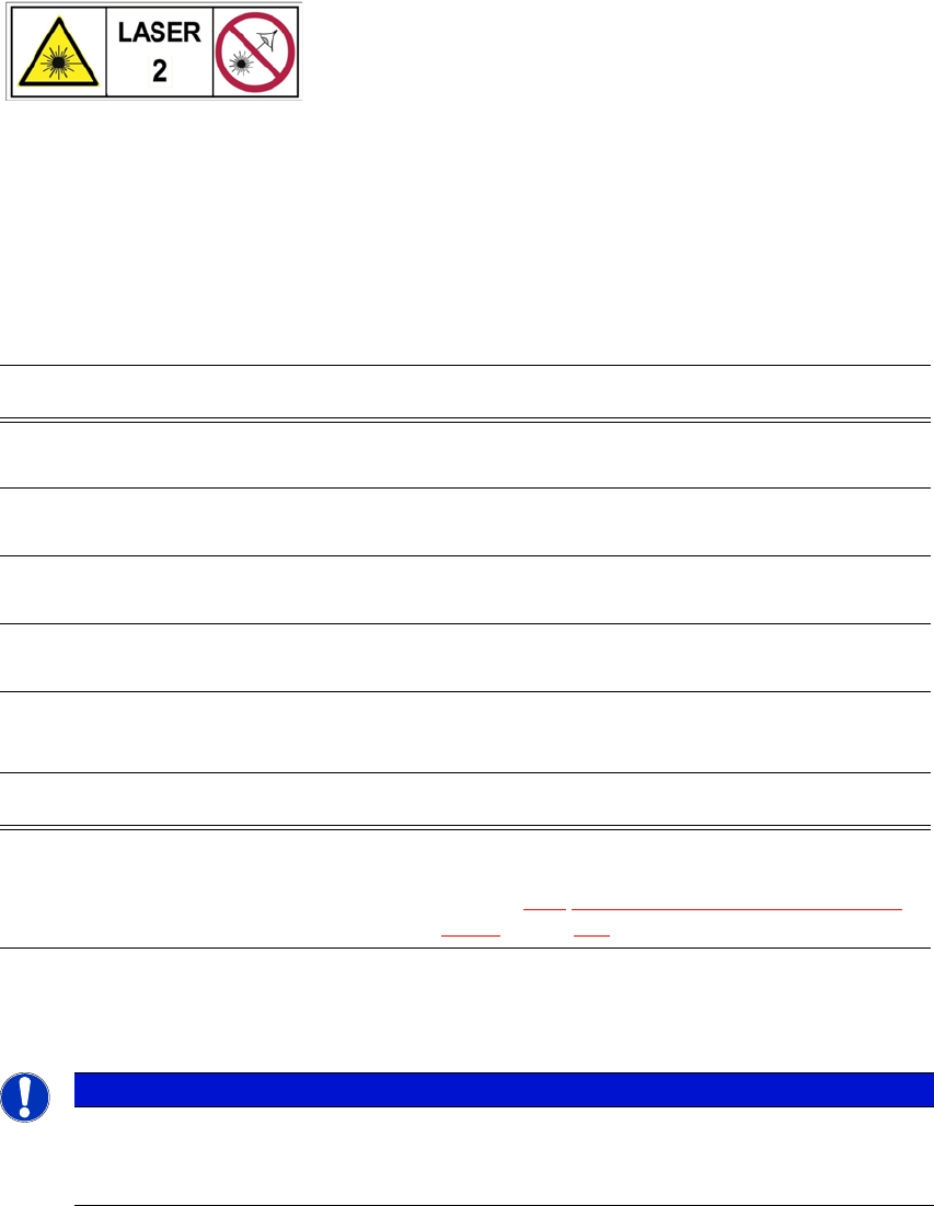 Třídy laseru jsou určovány ve smyslu IEC 60825-1:2014.