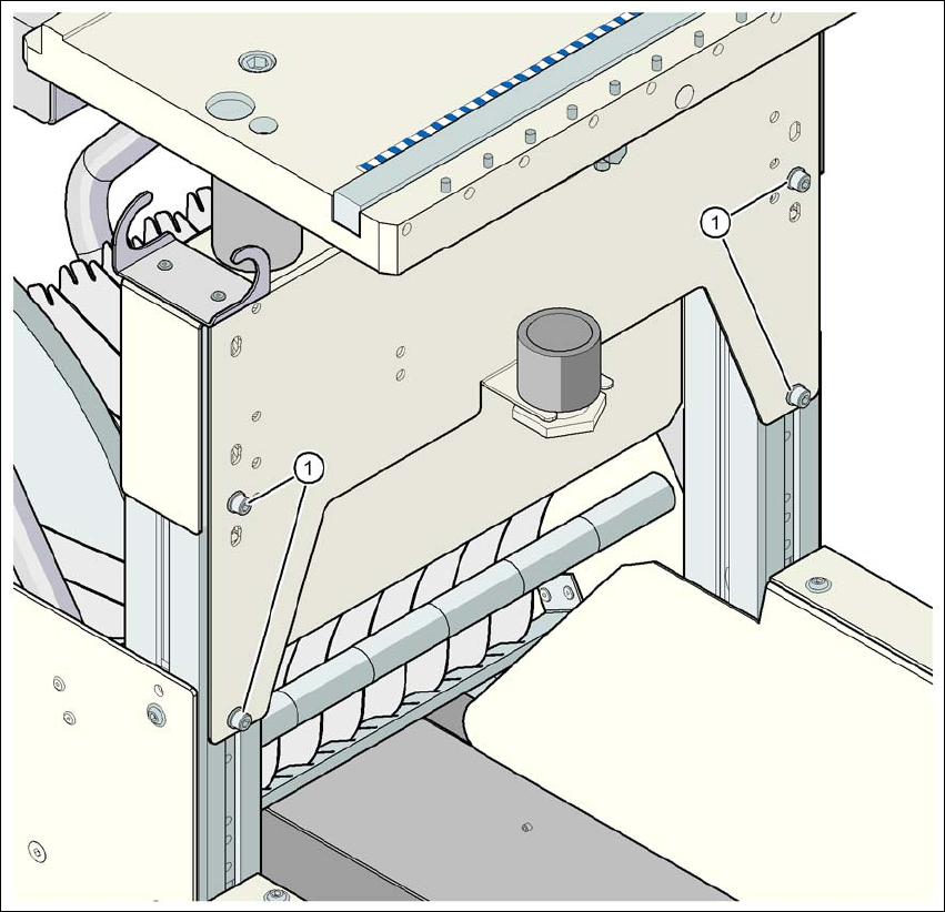 Abb. 4.4 - 9 BE-Wagen: LP-Transporthöhe 950 mm - Frontansicht, Lage der Innensechskantschrauben