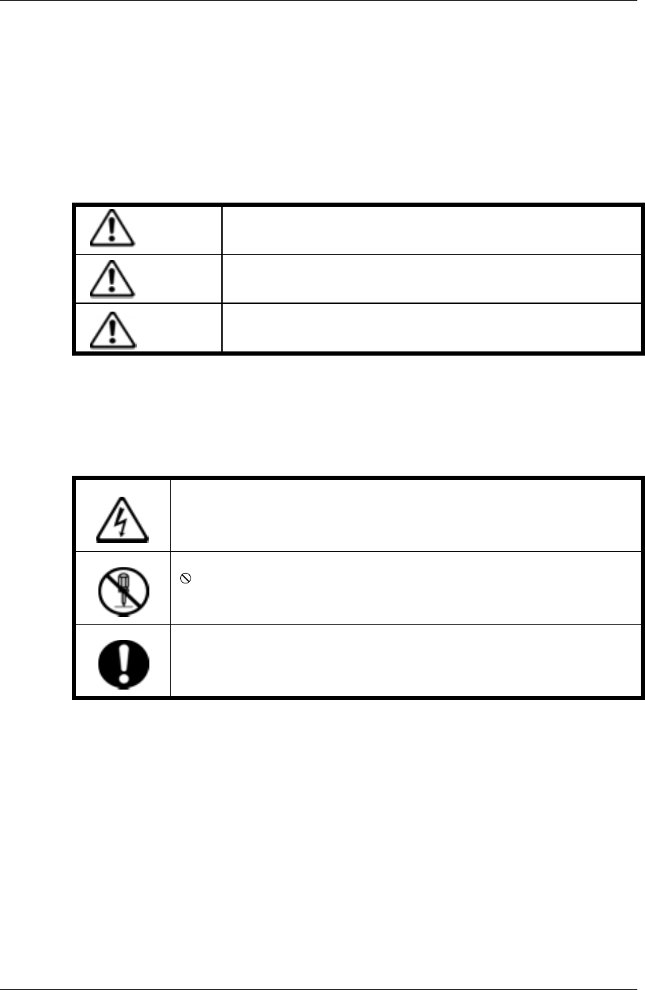 在本说明书中,为了保证正确和安全地使用机器,防止自己或他人受到身体伤害和财产损失,