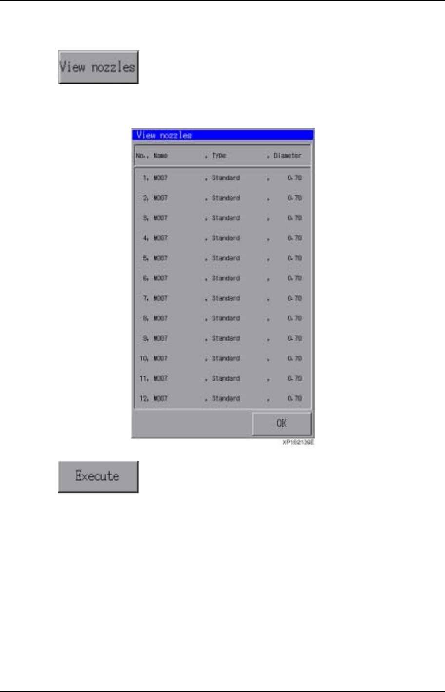 第 5 章 最优化 第 3 部 XP-141E 系统手册 3-5-4 Edition 1.0 操作按键说明 吸嘴最优化条件在选择“Use machine nozzle configuration”或 “Use program no zzle configurat ion”时, 会显示出以下的确认 吸嘴数据画面。 执行最优化。