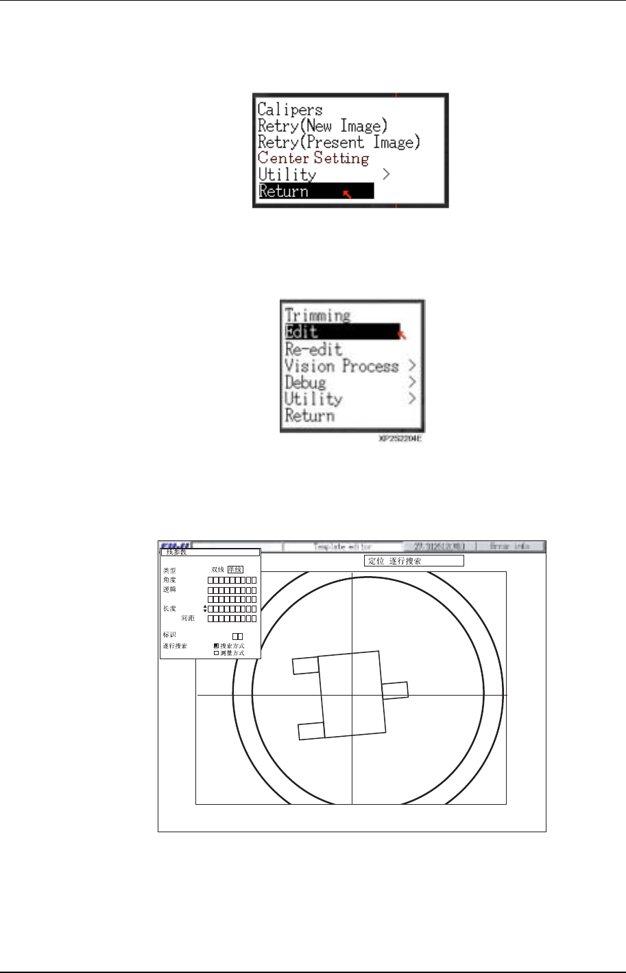 第 3 章 从现有元件数据中创建模板 第 4 部 XP-141E 系统手册 4-3-4 Edition 1.0 7. 右击鼠标显示出 [T rimming] 菜单,单击菜单上的 [Ca lipers] 键。 XP2S2202E 在需要改变 [Calipers] 窗口的显示位置时,在表示有 Calipers 显示区域的 蓝色部分, 右击鼠标后,拖放窗口至所需位置。 8. 为了使红线的交点位于元件中心, 单击红线后将其进行拖放, 或者直接将…