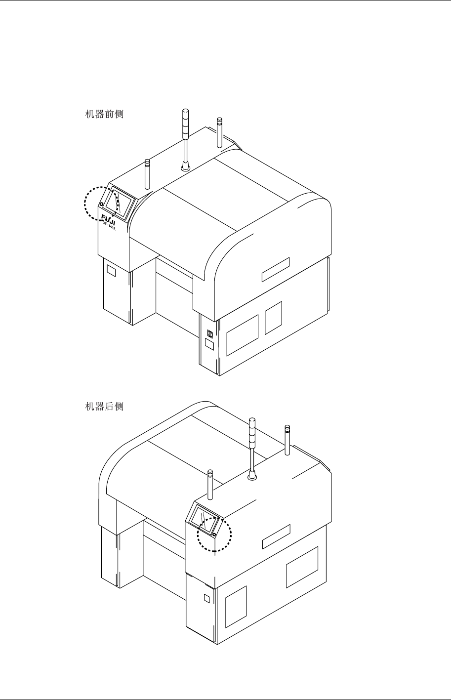 发生紧急情况时,请按下任何一个红色的[紧急停止]按钮,使机器停止。[紧急停止]按钮的
