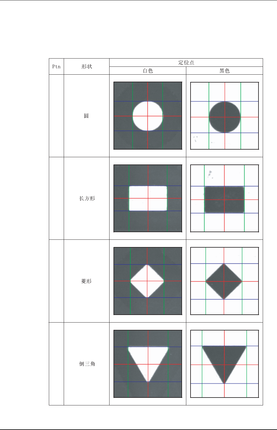 使用鼠标拖动卡尺线,与定位点的外形相吻合设定中心。下面将说明各种定位点如何与
