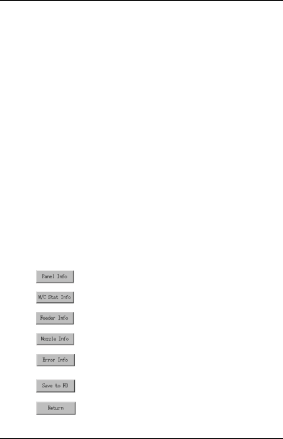 第 3 章 生产信息的显示功能 第 2 部 XP-141E 系统手册 2-3-14 Edition 1.0 3.2.6 供料器信息画面 项目说明 Feeder 显示满足指定条件的生产数据或是在选 择日志文件中注册的供料器。 如果选择的日志文 件是 NO- PROGRAM 文件,则不包含此处理过程。 Part Number 显示满足指定条件的生产数据或是在选 择日志文件中指定的元件数据名称。 消耗量 显示满足条件的生产数据, 或是在选择日…
