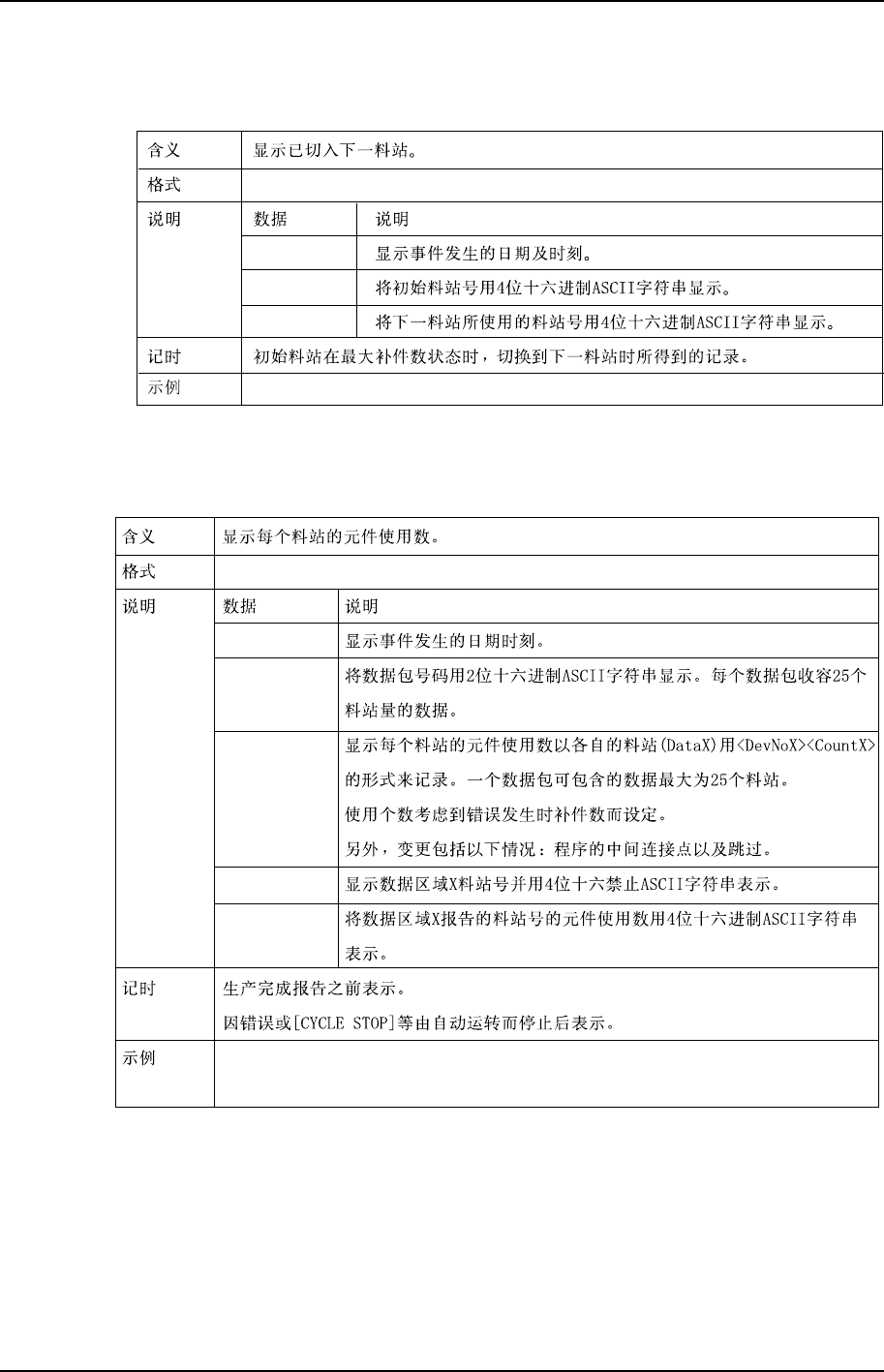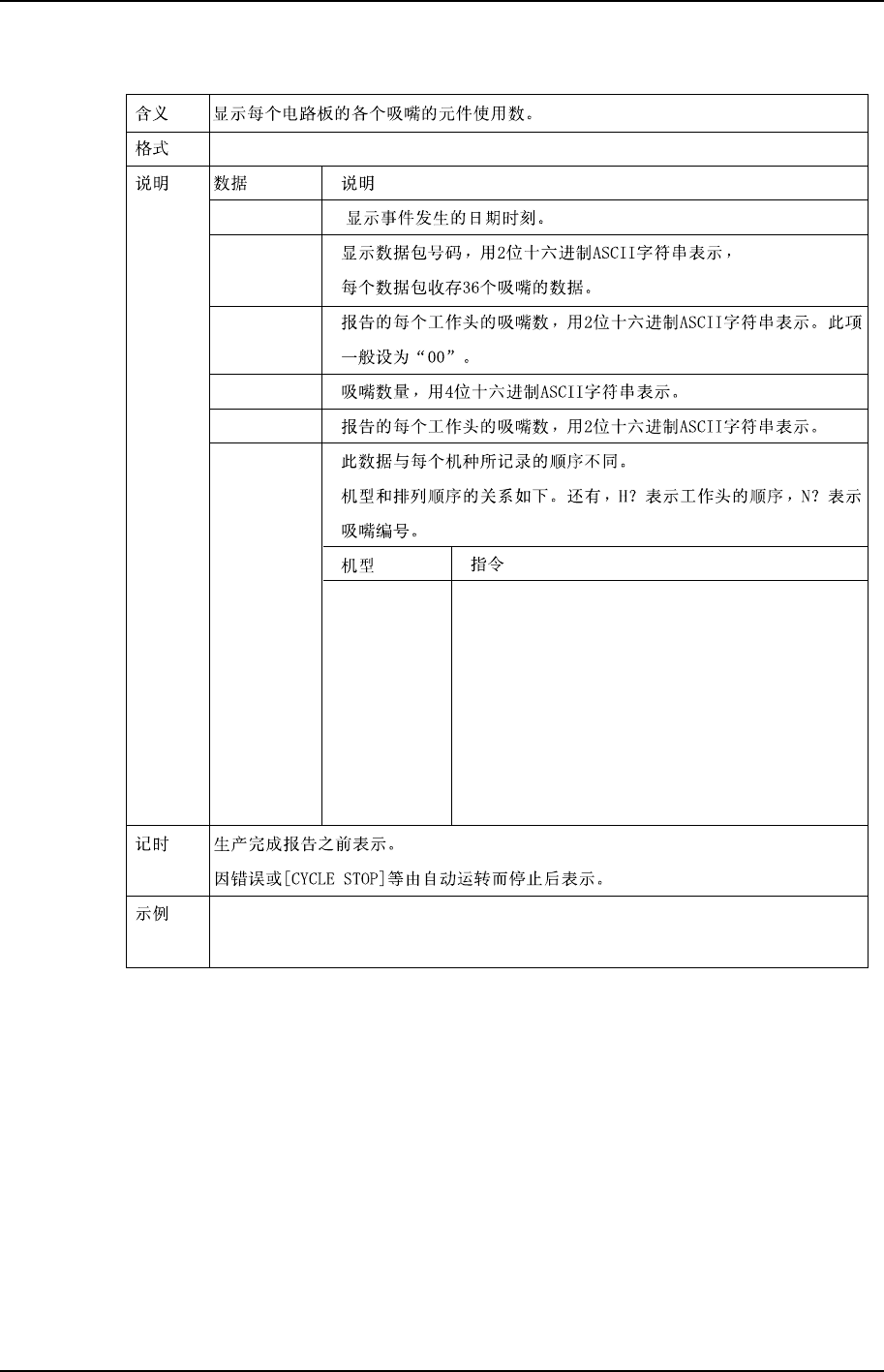 第 2 部第 3 章 生产信息的显示功能 Edition 1.0 2-3-23 XP-141E 系统手册 mMN TimeStamp PacketNo HeadQTY NozzleQTY Count1 Count2...... mMN:0C2238:010C030096001401F4002F01A4000E....... mMN:0C2238:0102050064000302F0003A00E50008...... C-2,3 C-4…