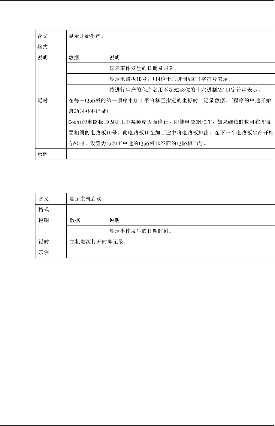 第 3 章 生产信息的显示功能 第 2 部 XP-141E 系统手册 2-3-26 Edition 1.0 pF TimeStamp Count ProgramName pF:0C2238:0064:SAMPLE_1.PGO pF :<TimeStamp>:<Count><ProgramName> XP1S2083CM pQB TimeStamp BockNo pv pQB:0C2238:0008 p…