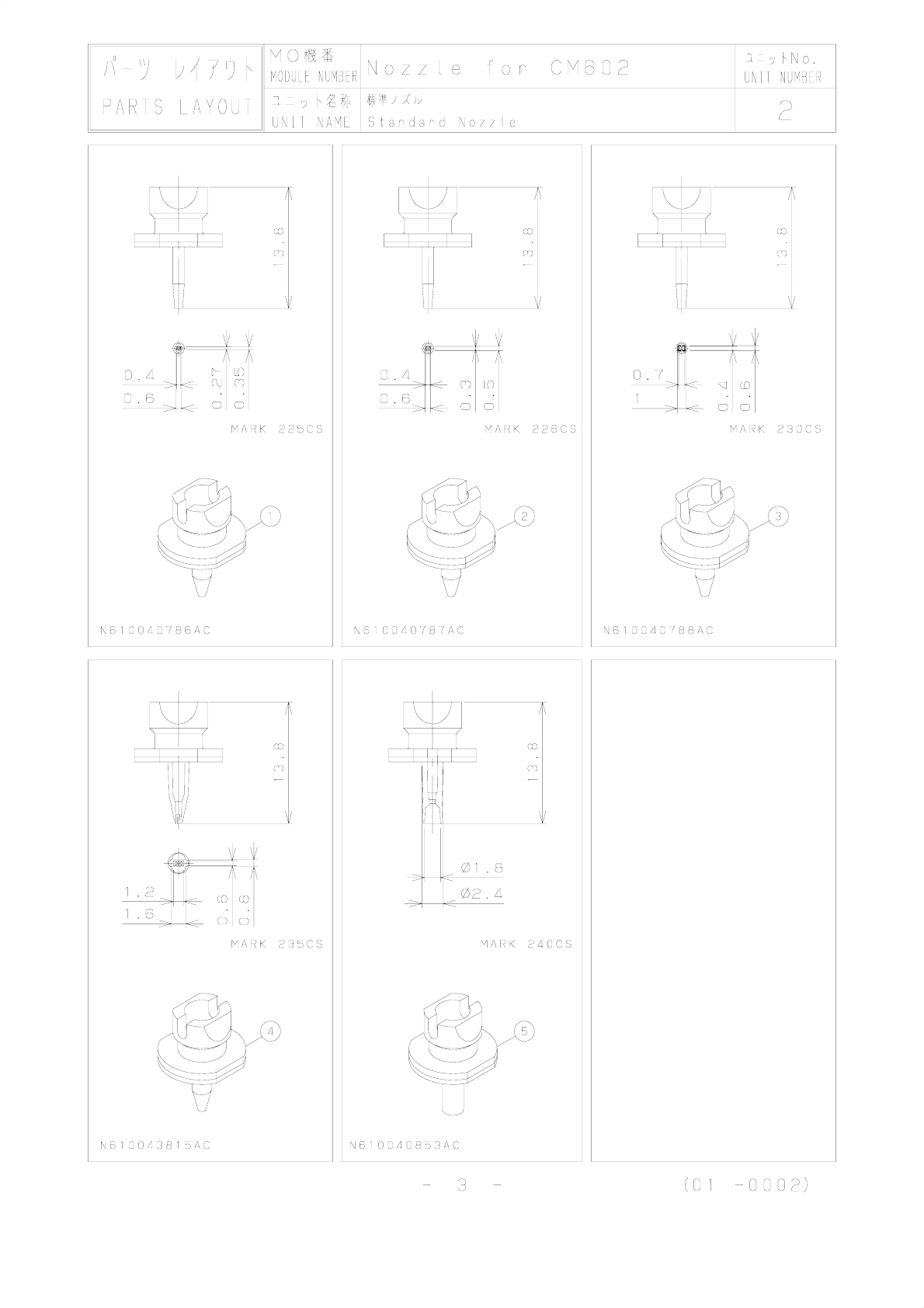 番号 品番 ランク 備考 NO PART NUMBER RANK REMARKS 1 N610040786AC 2 N610040787AC 3 N610040788AC 4 N610043815AC 5 N610040853AC 6 7 8 9 10 11 12 13 14 15 16 17 18 19 20 21 22 23 24 25 26 27 28 29 30 1 NOZZLE No.225CS NOZZLE No.226CS…