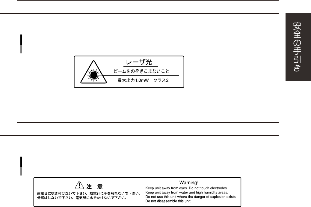 レーザー光を直視すると失明する恐れがあります。