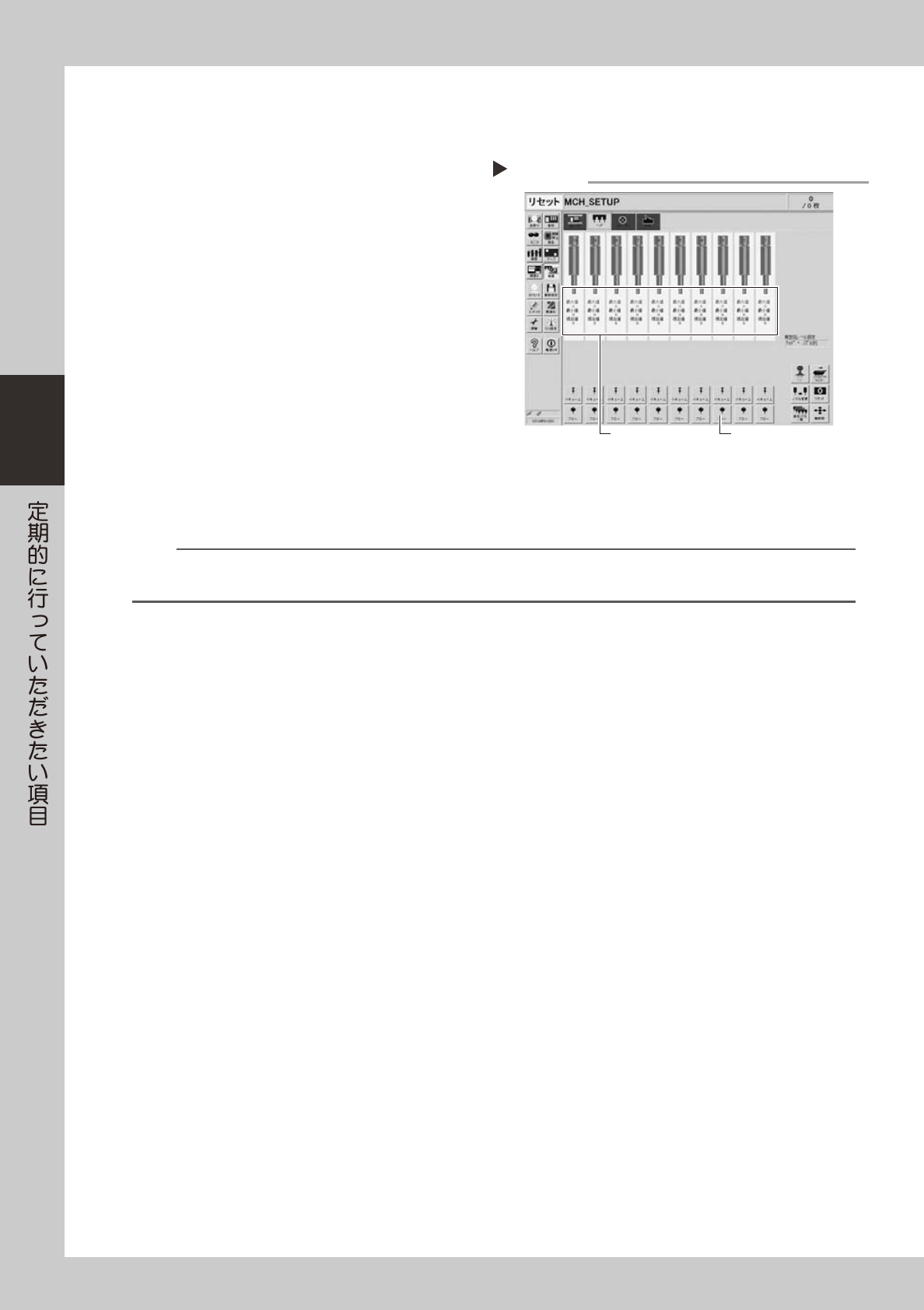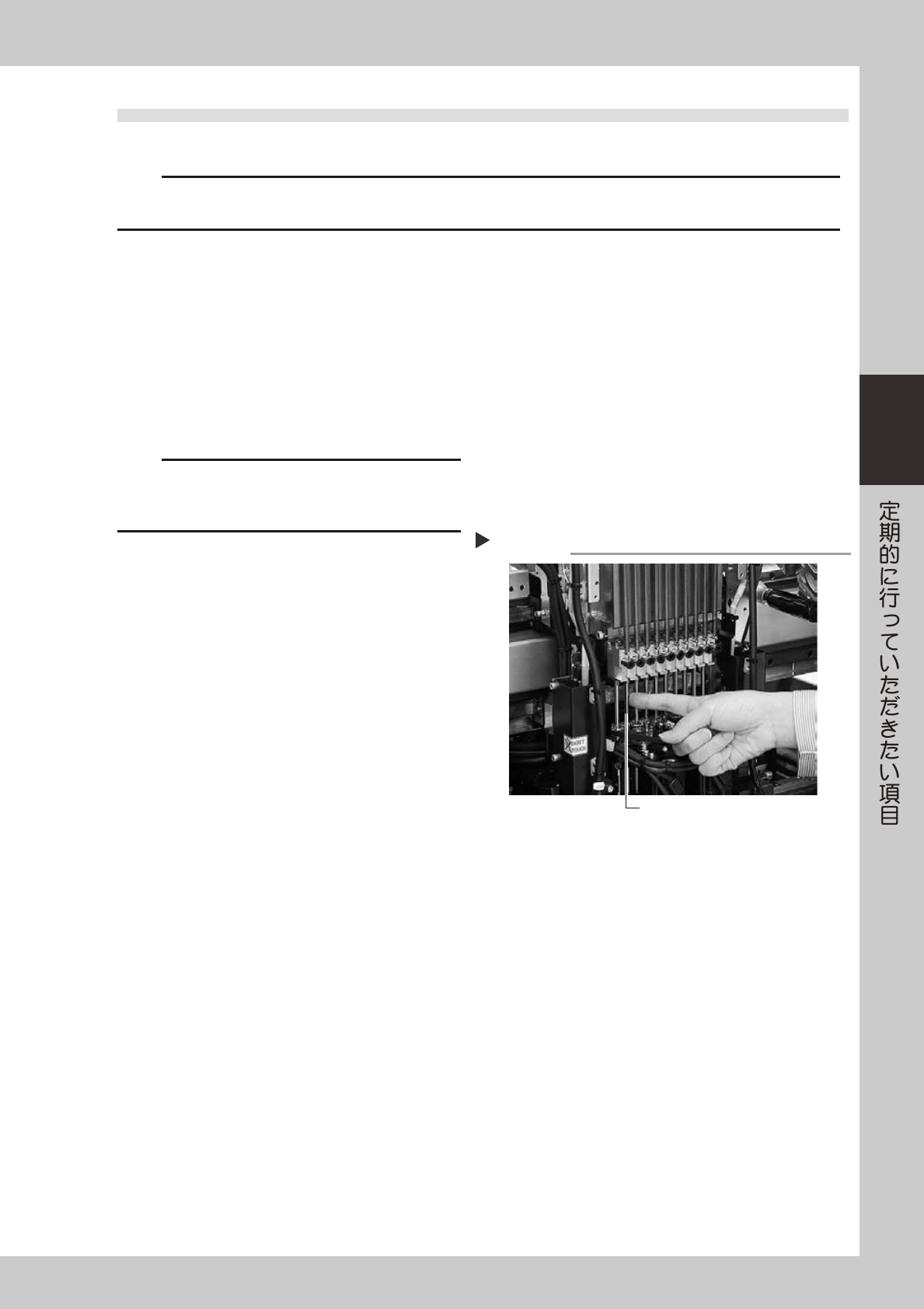 3-22 3 3.2.2 負圧状態の確認 スプラインシャフトを洗浄したら、負圧の確認も行います。 1 組み付け後の確認をします。 1. ヘッドはノズルなしの状態にしておきます。 2. [ 装置 ] ー 「ヘッド」 タブ画面を開き、 [ バキュー ム ] ボタンを押して負圧を発生させ、画面に 表示される「MAX」の数値を読みとってくだ さい。下表の基準値を目安に確認してくださ い。 52311-L5-00 2 ノズルを元どおりに取り…