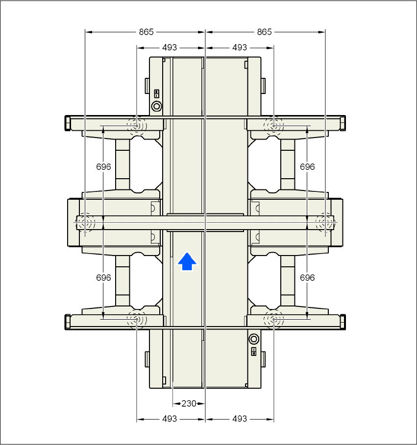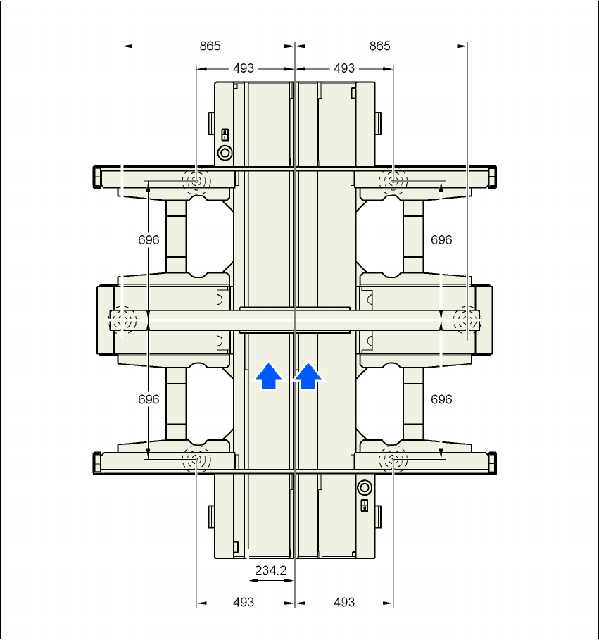 그림 4.3 - 5 PCB 이중 컨베이어에 대한 장비 다리 여유 공간 및 고정 우측 컨베이어