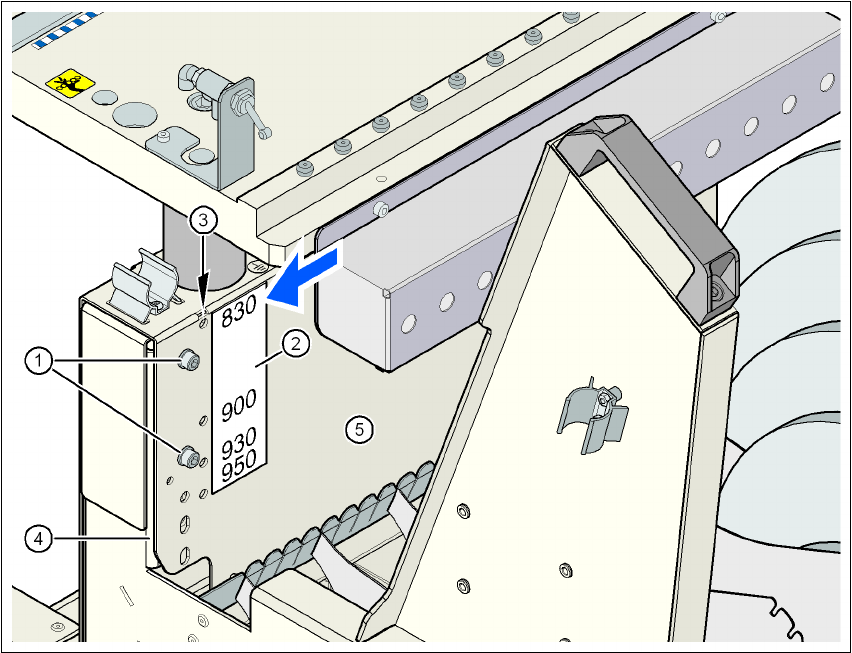 사용자 매뉴얼 SIPLACE D4i 4 셋업 및 시운전 소프트웨어 버전 SR.605.03 SP2 에서 업데이트 10/2 012 영문판 4.4 PCB 컨베이어 높이에 맞게 컴포넌 트 트롤리 조정 177 4.4 .4 830 m m PC B 컨베이어 높이 4 그림 4.4 - 2 컴포넌트 트롤리 : PCB 컨베이어 높이 830mm - 뒷모습 , 6 각 소켓 헤드 나사 및 점검구의 위치 (1) 6 각…