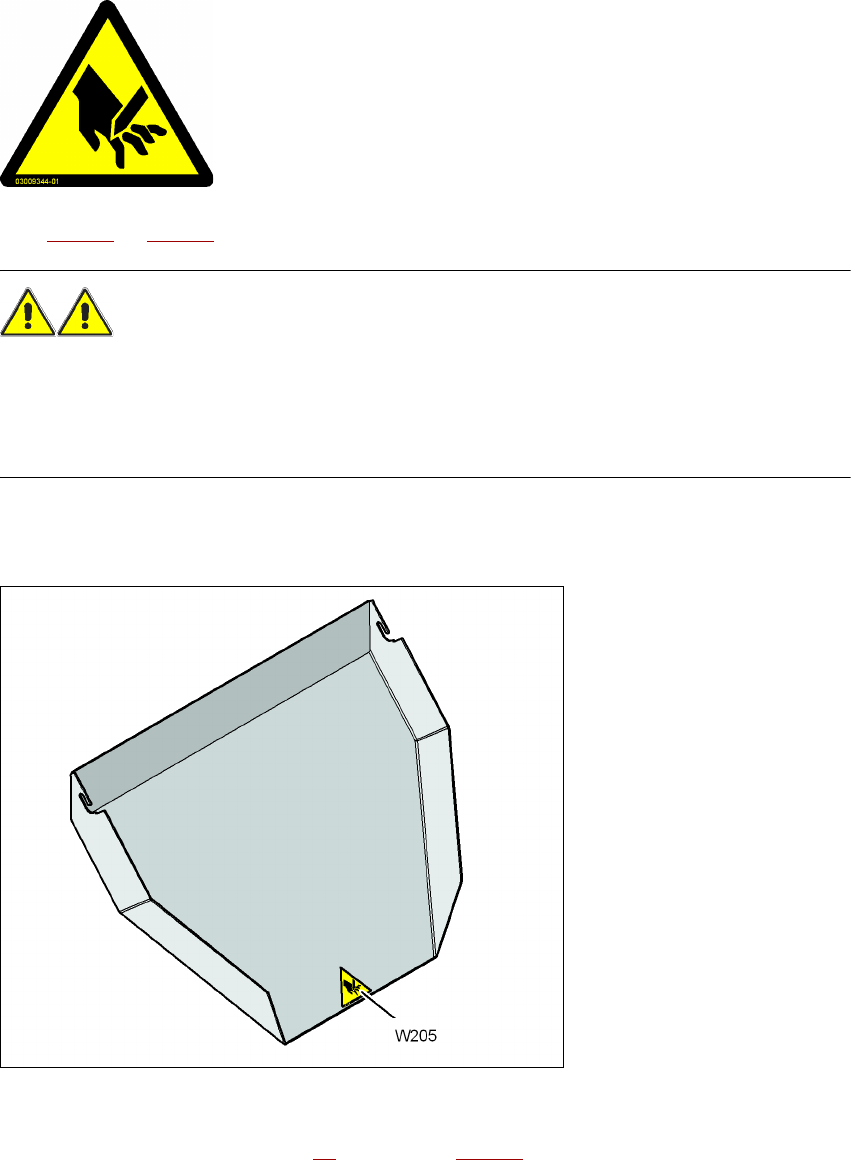 2.2.3.2 테이프 절단기 하단의 횡단 바에 부착된 경고 라벨 W205
