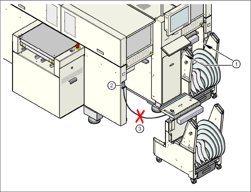 사용자 매뉴얼 SIPLACE D4i 2 작동상의 안전 소프트웨어 버전 SR.605.03 SP2 에서 업데이트 10 /2012 영문판 2.5 장비 작동에 관한 안전 지침 53 경고 2 → 컴포넌트 트롤리 와 장비 본체 ( 52 페이지에 있는 그림 2.5 - 2 의 항목 1) 사이의 간격에 손 을 넣지 마십시오 . → 컴포넌트 트롤리용 공급 기 케이블 ( 52 페이지에 있는 그림 2.5 - 2 …