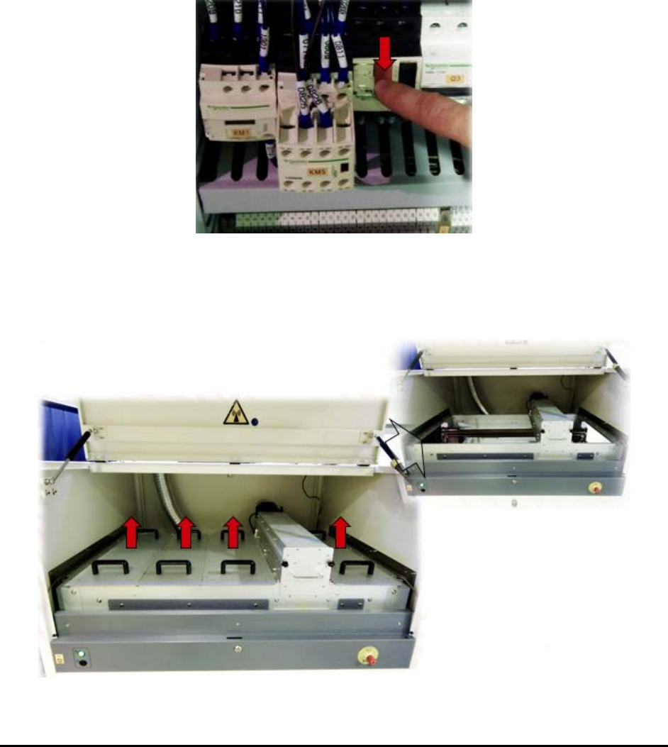 3. Open the electrical cabinet and turn off the top lamp’s circuit breaker (Figure 6-7).