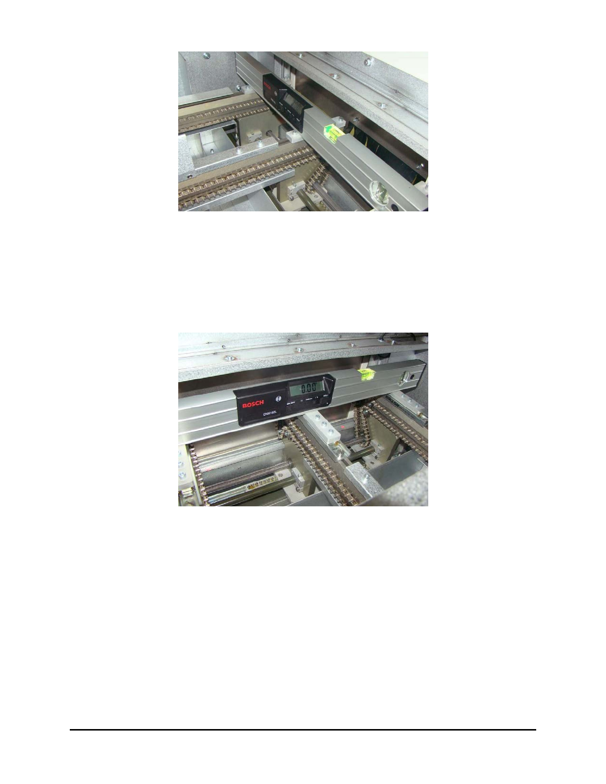 8. Place the level at the conveyor exit, with one end of the level on the front rail and the other