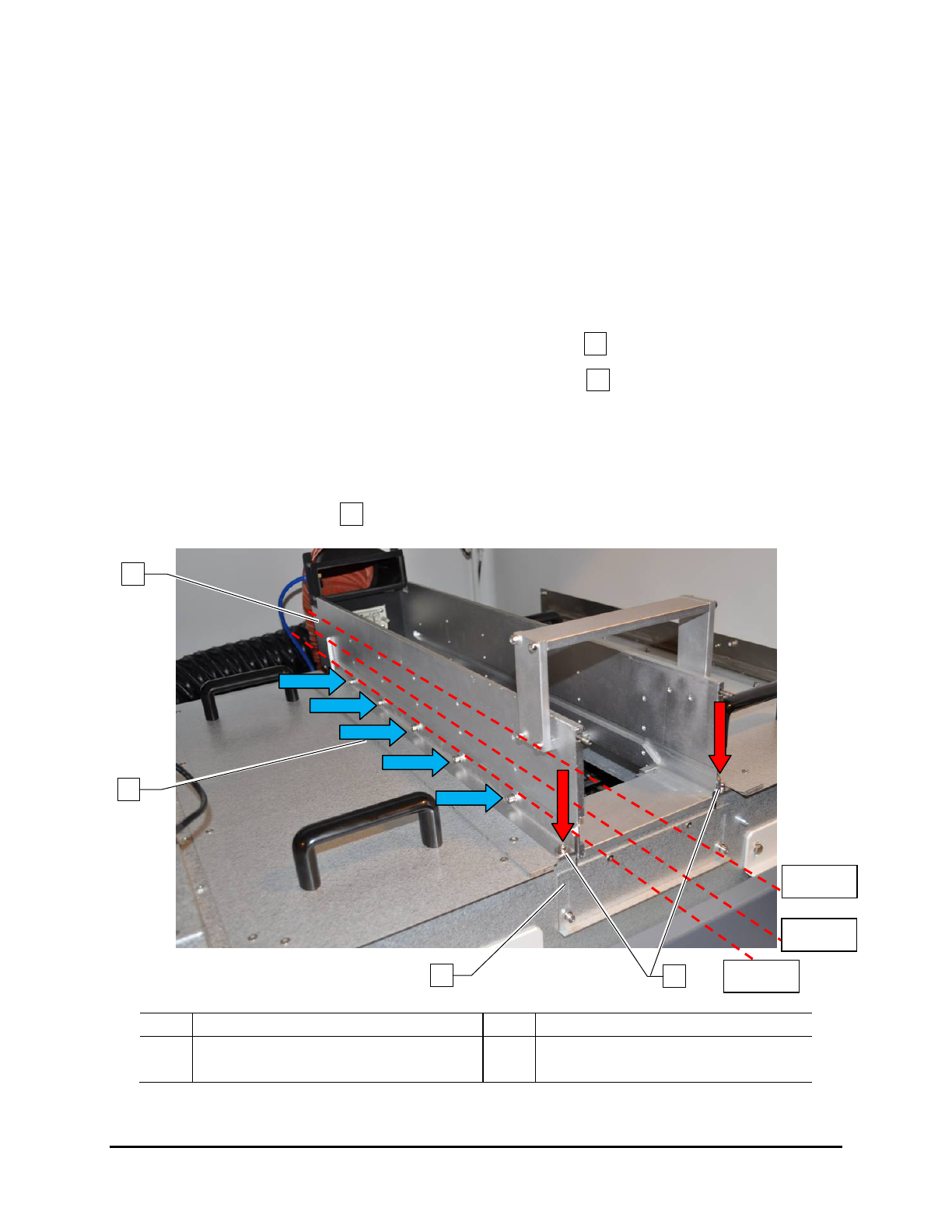 3. Remove the 5 screws on each side of the support beam (blue arrows).