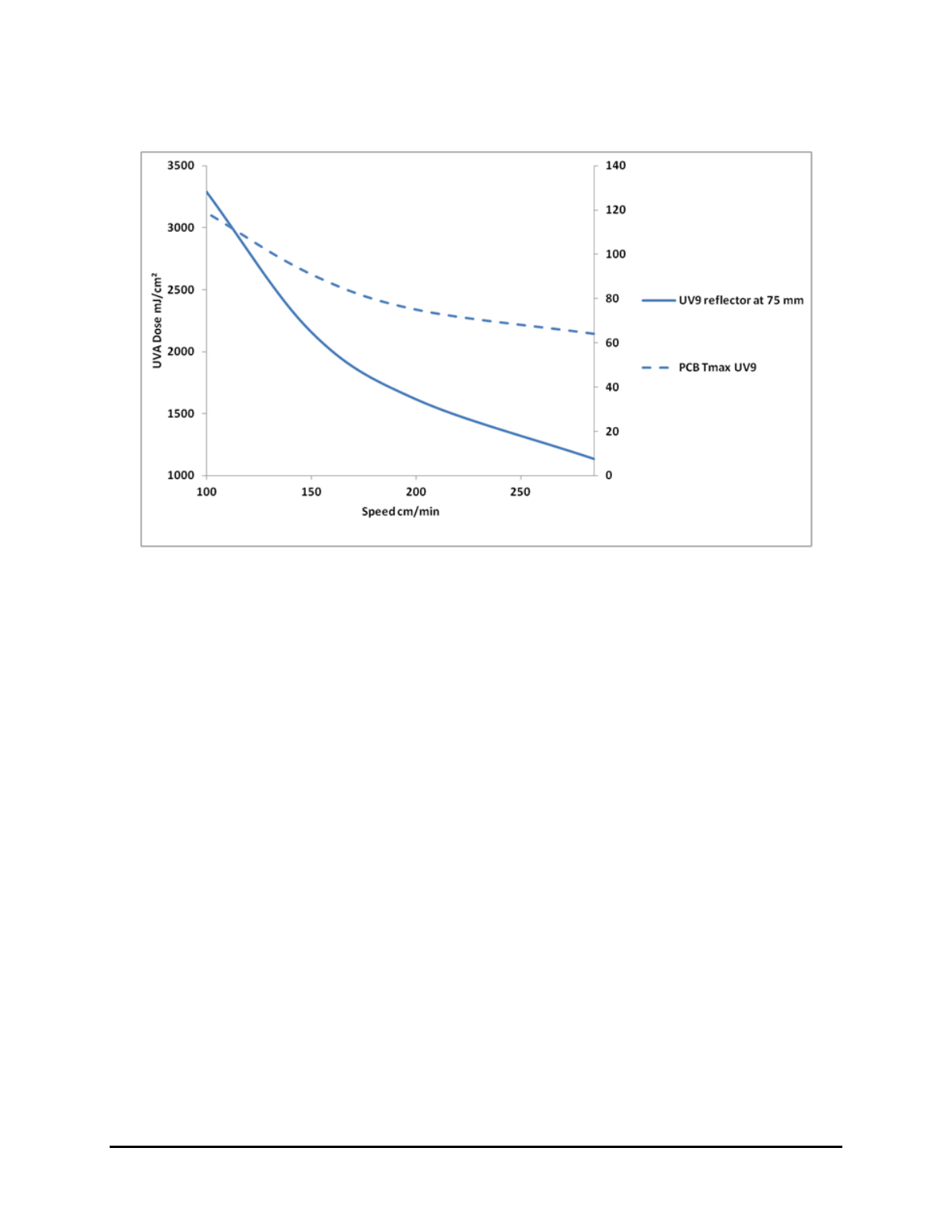 1. From the technical specification sheet of the UV product, determine the conveyor speed and
