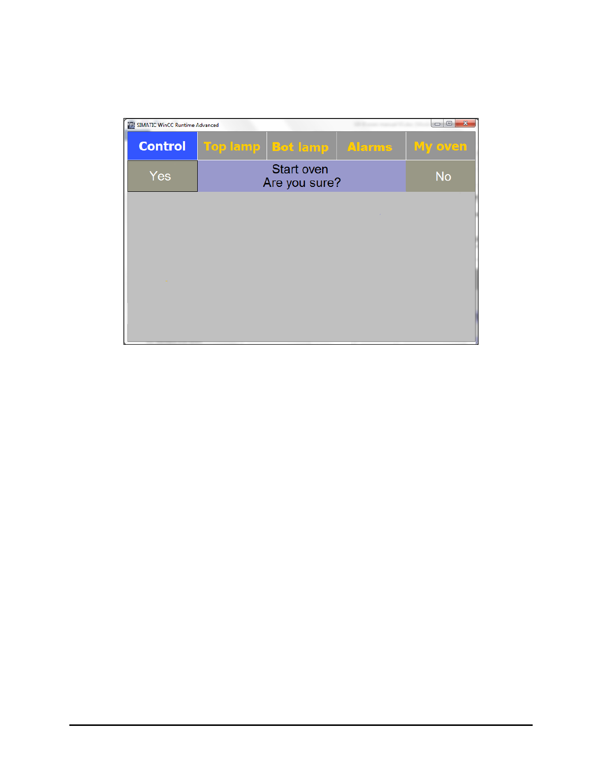 Figure 5-4 Start Oven Confirmation Screen