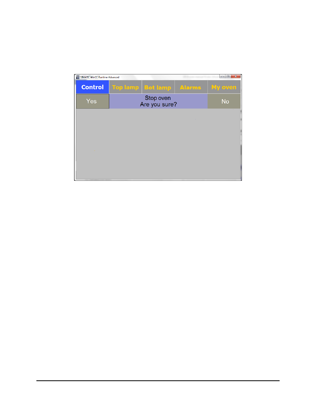 Figure 5-5 Oven Stop Confirmation Screen