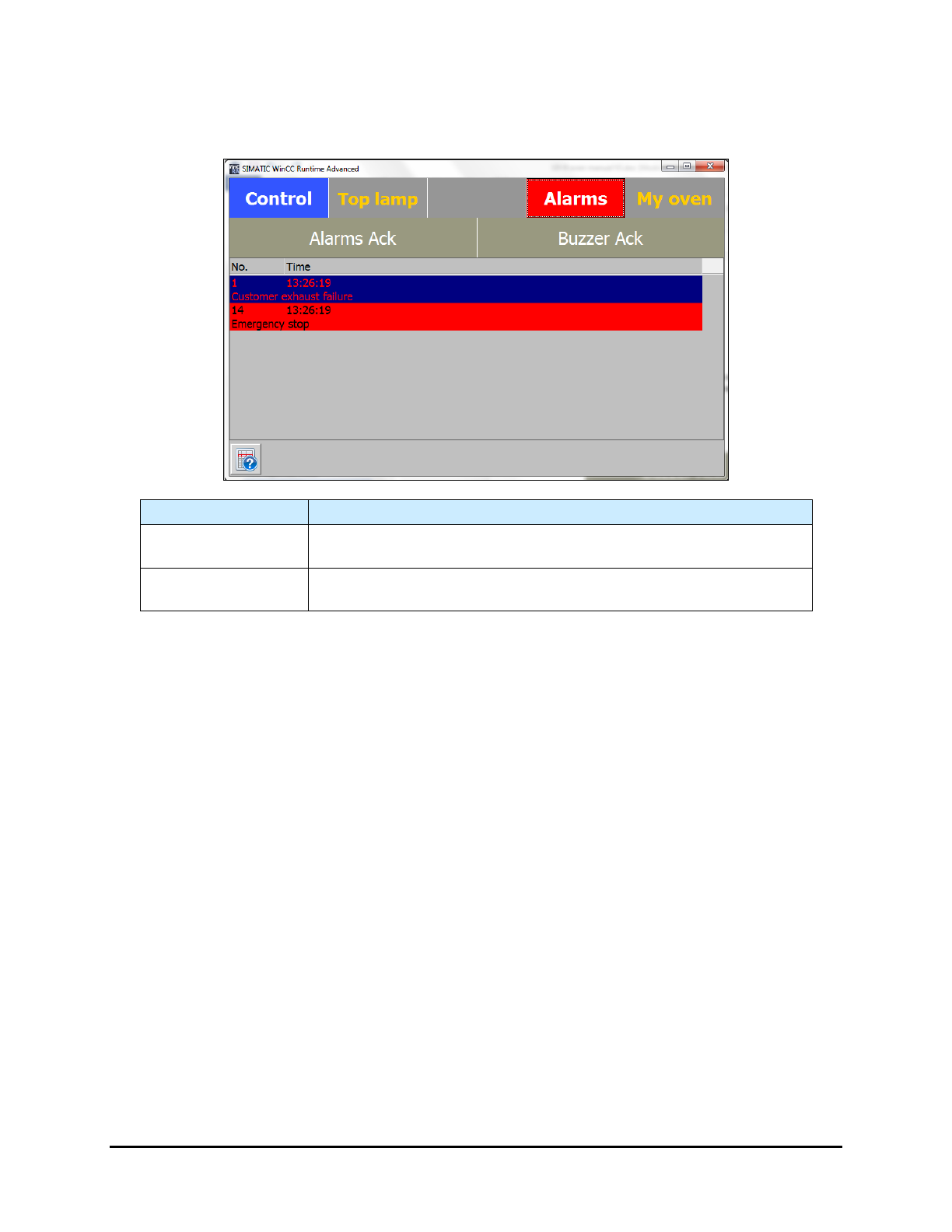 Select the Alarm Ack button, after fixing the defect, to acknowledge
