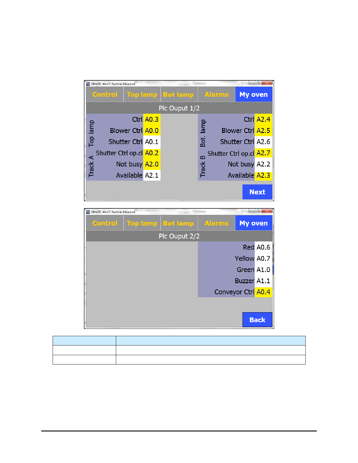 5.7.4.7 PLC Input Screens The PLC Inpu t screens display the active/inacti ve status of the in puts. Select the Input PLC button on the "My Oven" menu t o open this scre en. NOTE The background of th e inputs…