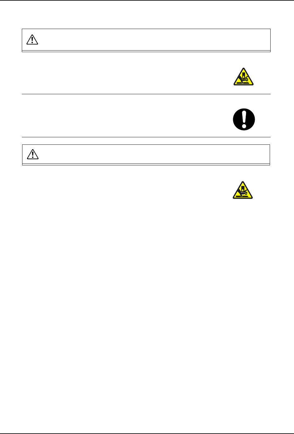QD045-03 1. 安全指南 AIM 安装手册 9 1.3.2 料盘单元 -L 警告 在将料盘单元 -L 安装到机器本体上时,请确认在料盘单元 -L 与机 器本体之间没有他人。 · 手或者身体有可能被卷入机器而受 伤。 当料盘单元 -L 处于与机器本体分离的状态时,请锁住脚轮。 · 在不同的地面状态下, 被取下的料盘 单元 -L 有可能在滑出后与人体 相撞致使人体受伤。 注意 在开闭料盘单元 -L 的上部门、正面门、下部门时,请注意…