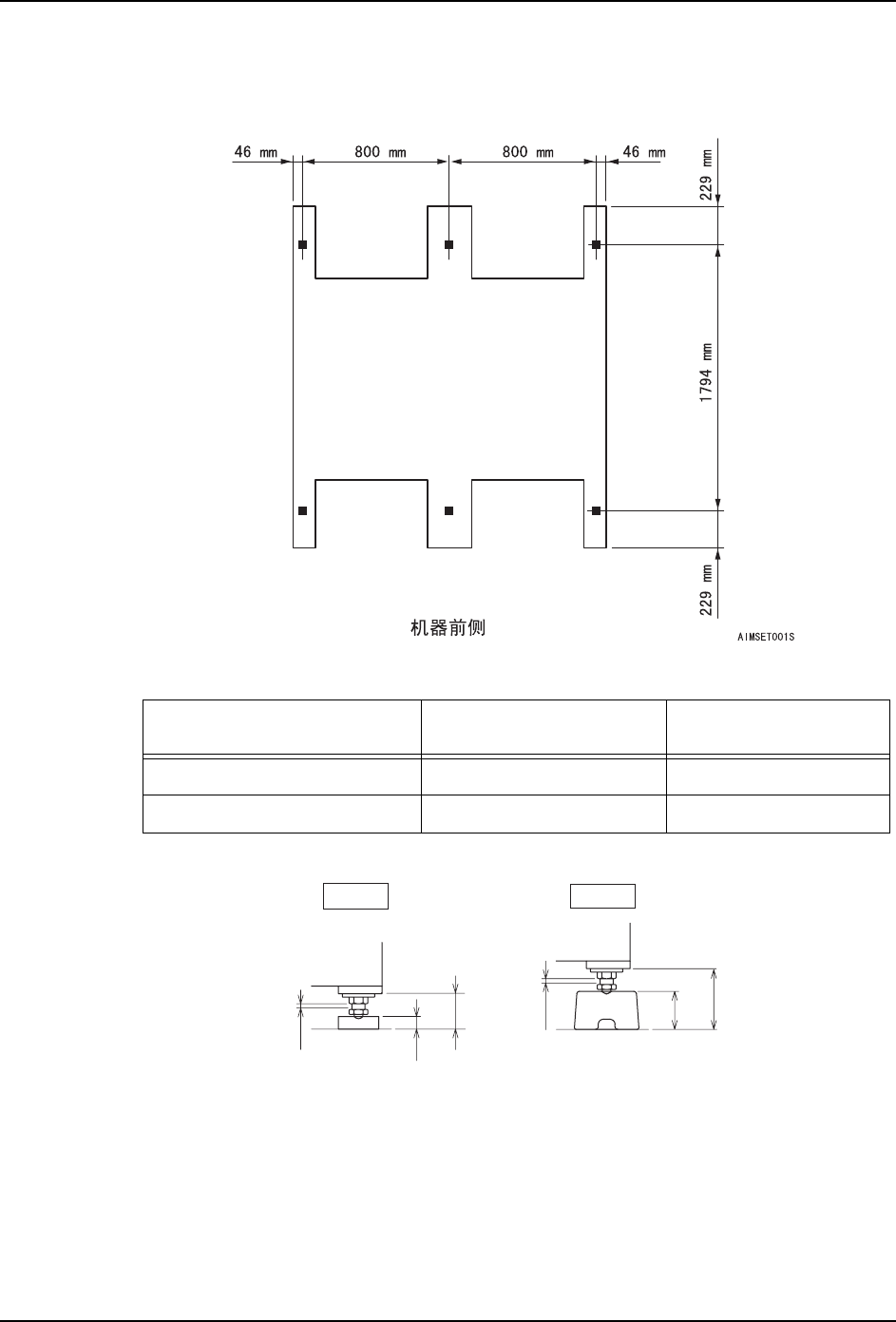 1. 关于机器的新摆放位置,请先将水平调整垫脚放置在所定位置。