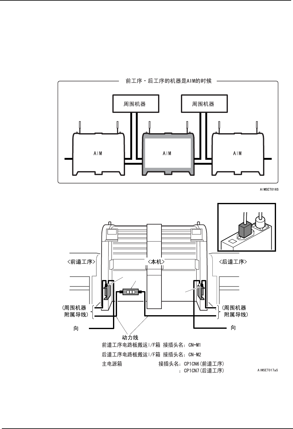本机前后连接有 AIM,并在其间连接周围机器时的要点如下。
