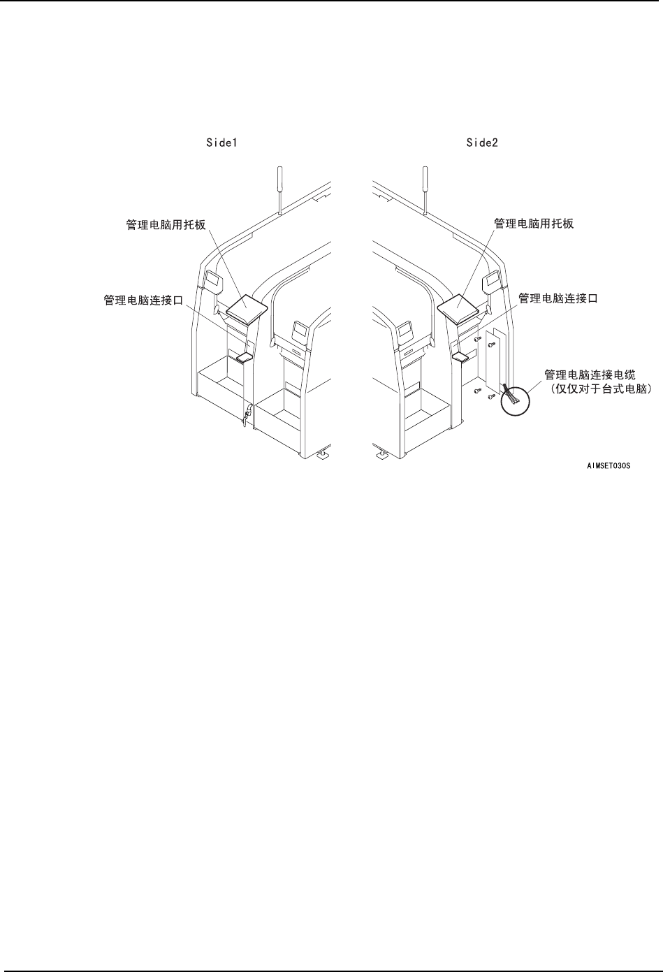 QD045-03 3. 机器的安装 AIM 安装手册 51 3.10 管理电脑的连接 在此将管理电脑 (安装有附加软件的电脑)连接到本机上 。管理电脑是笔记本电脑时, 搭 载在本机的托板上。 台式电脑时, 有必要另外准备搭载显示屏之类的托板 (或者适当的台 式电脑) 。