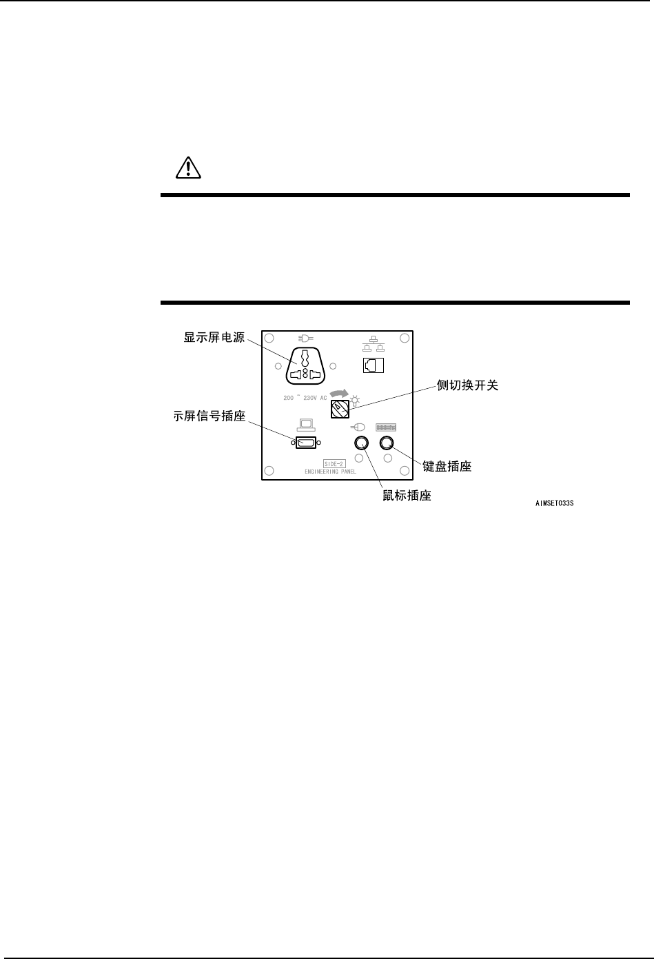 1. 在要使用另外准备的托板 (或者显示屏)的机器一侧的上面配置显示屏、键盘、鼠标。
